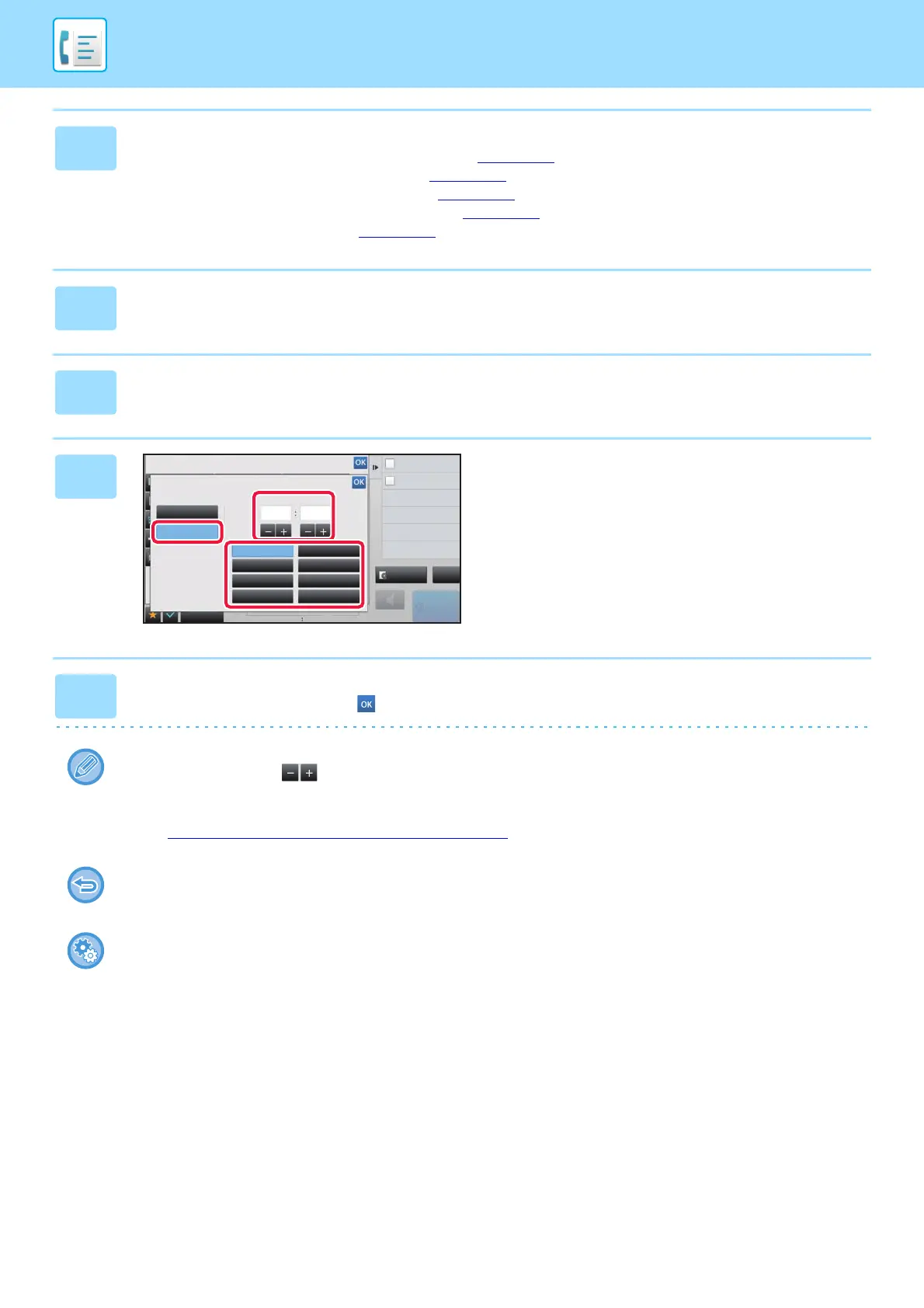 After the settings are completed, tap and [Back] keys in sequence.