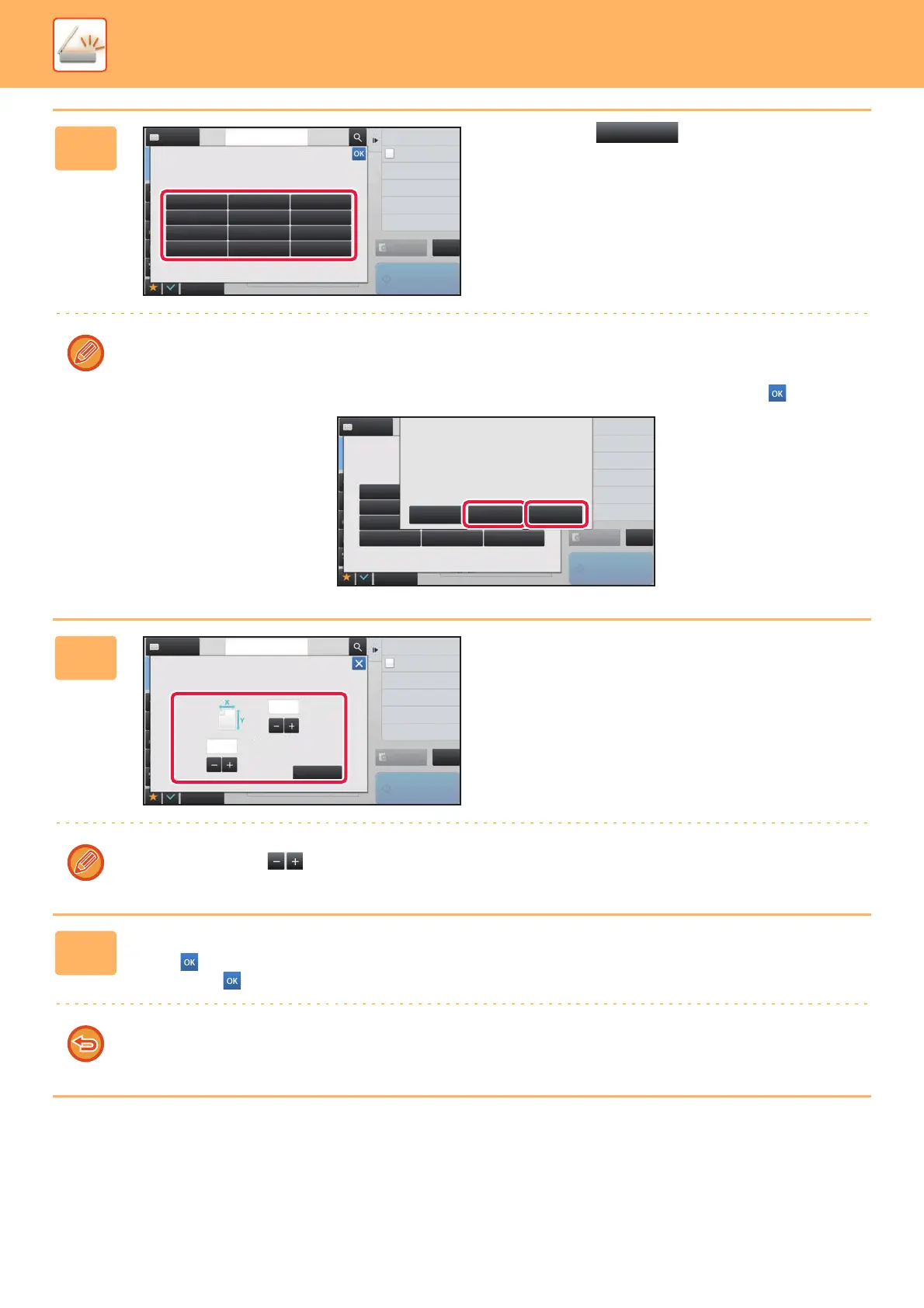 Tap the key, and check that the key of the size stored on the Scan Size screen is added properly. After you have