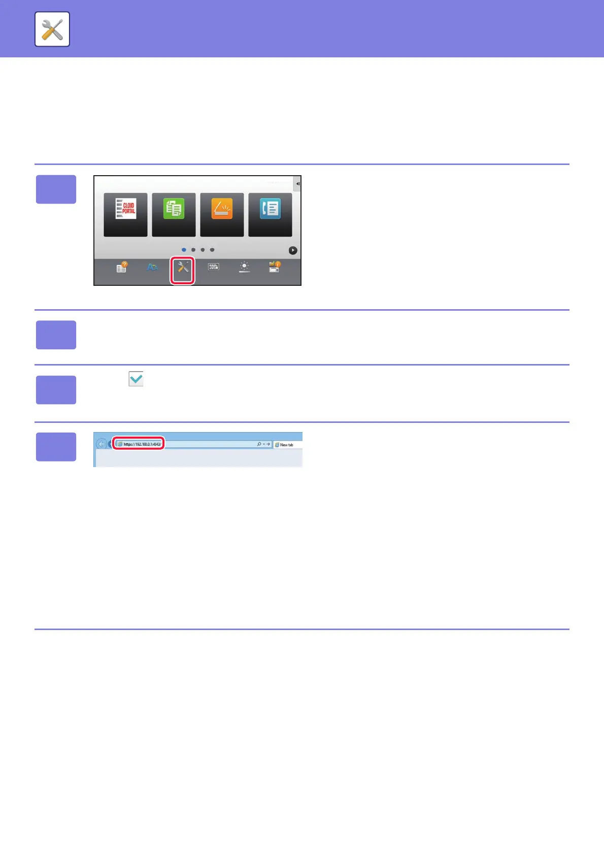 From the setting mode of the machine, print the IP address of the machine and enter the address on the PC’s Web