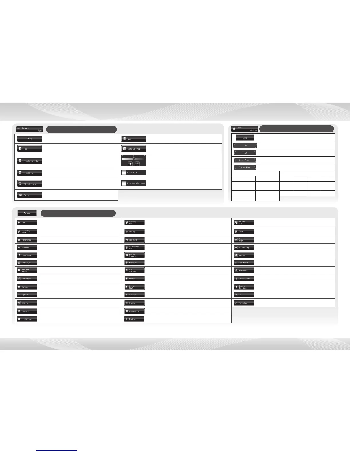 Specify the image print position Splits a pamphlet original by page in a copy Inverts the original into a mirror image