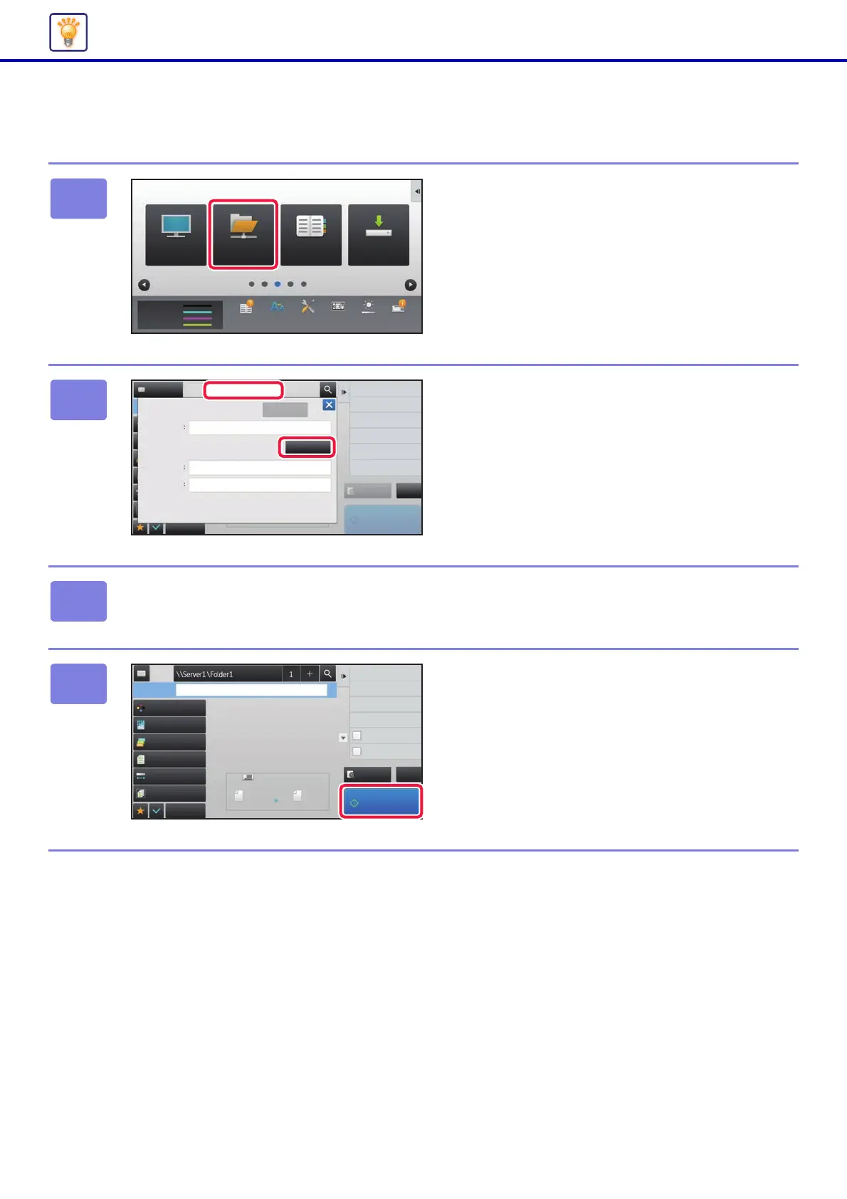 Select "Workgroup" → "Server" → "Network Folder", and tap the [Execute]