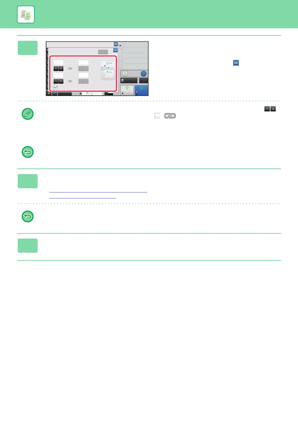 To quickly set the area, first specify a value close to the desired value by the numeric keys, then adjust it with .