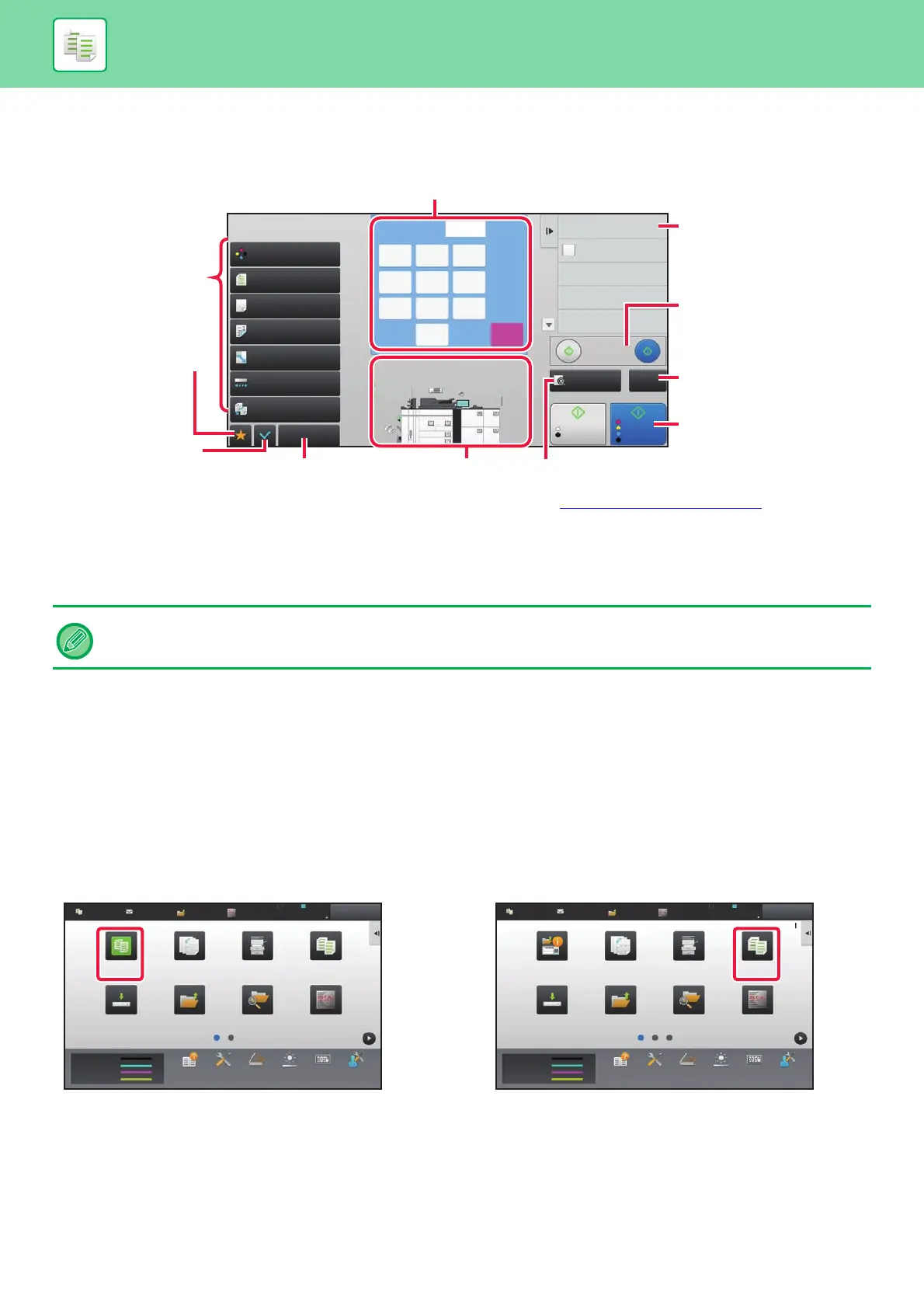 Follow the steps below to change from the Home Screen or each mode to copy mode.