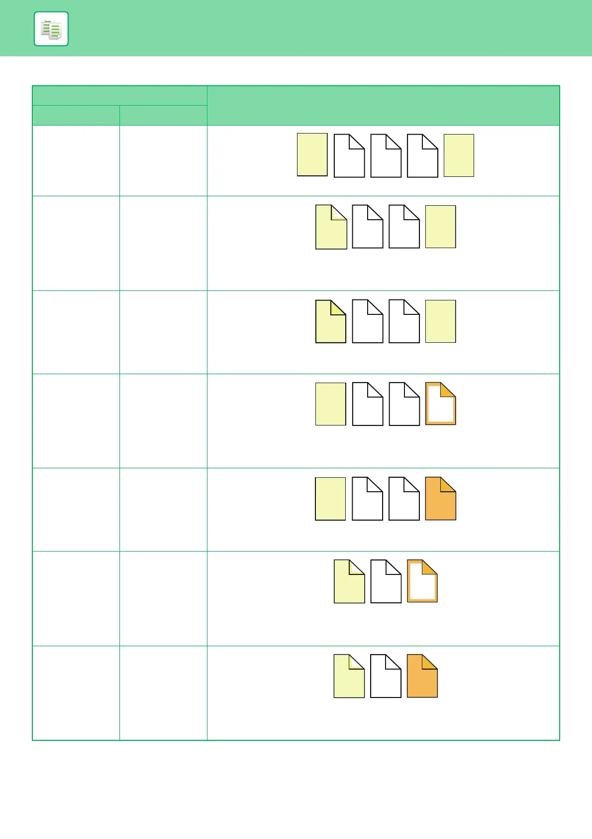 Inserts a front cover at the beginning of copies, and makes a 2-sided copy on the fifth