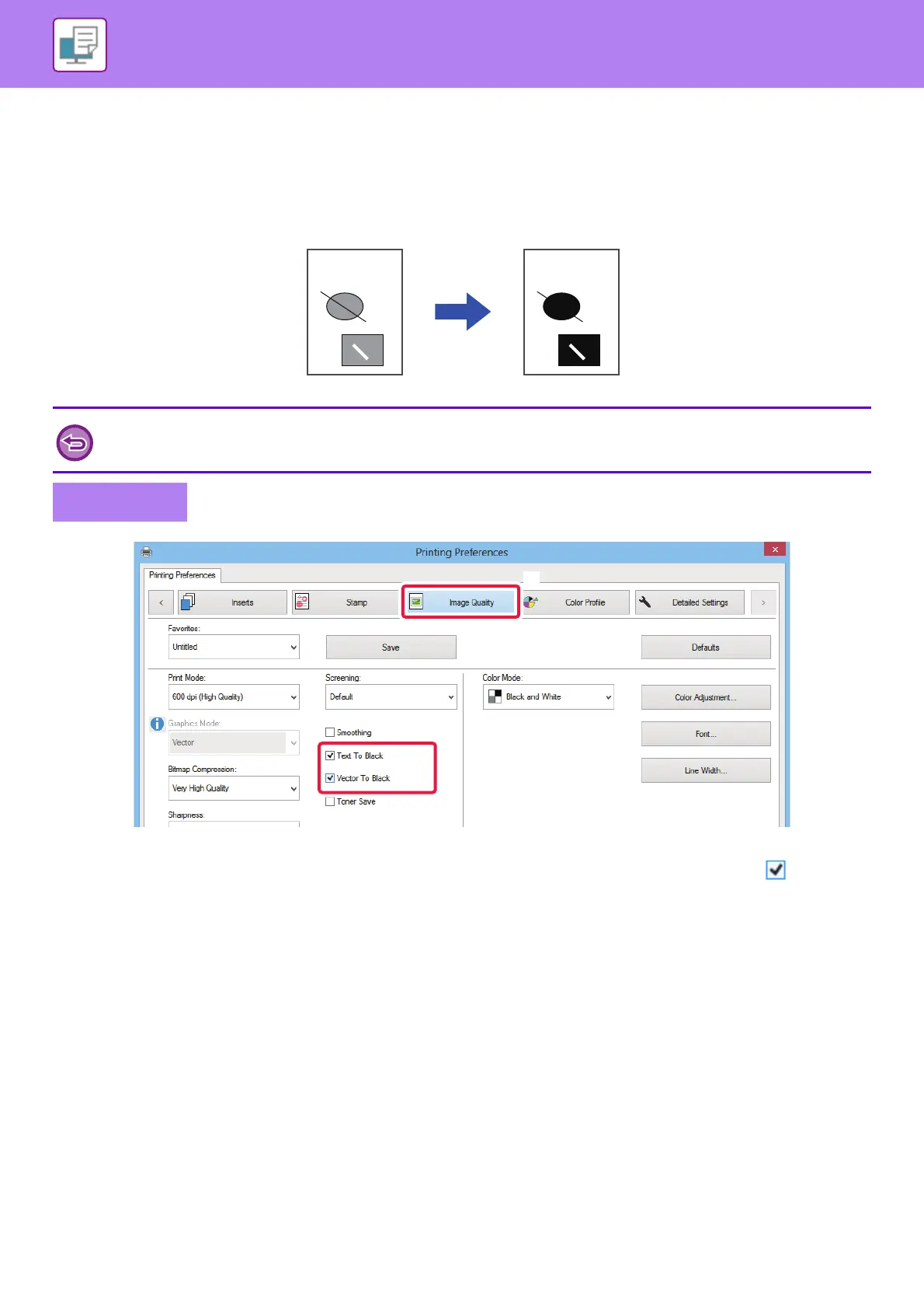 (2) Select the [Text To Black] checkbox and/or the [Vector To Black] checkbox so that appears.