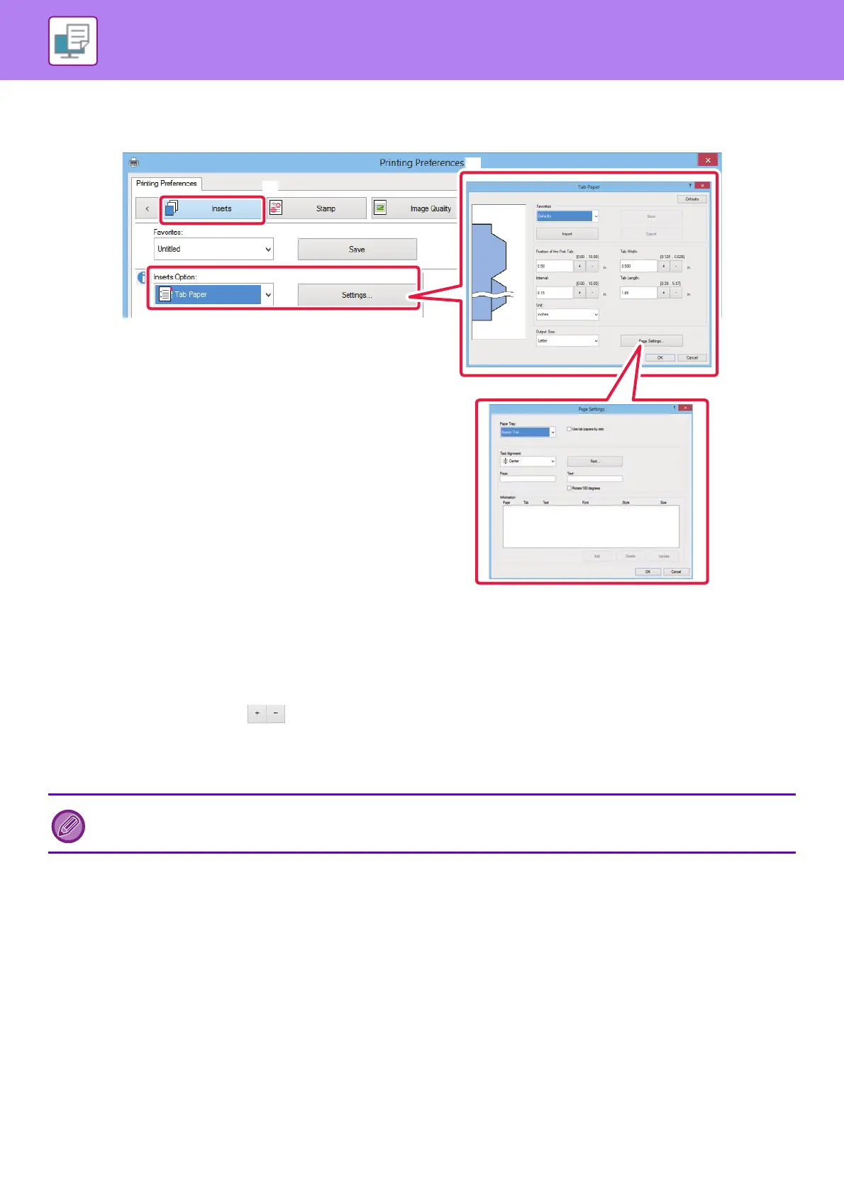 (2) Select [Tab Paper] from "Inserts Option", and click the [Settings] button.