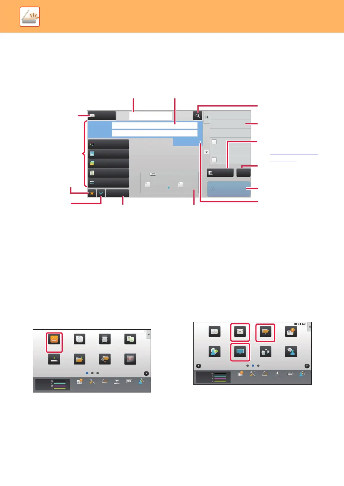 available in the Image Send mode, including Scan to E-mail and Scan to FTP. The base screen layout slightly differs