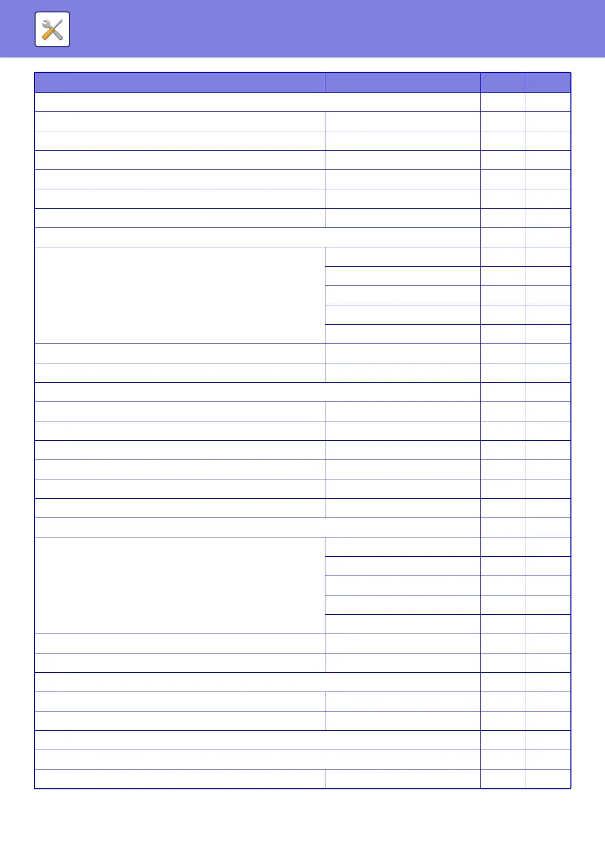 SYSTEM SETTINGS►SETTING MODE LIST
