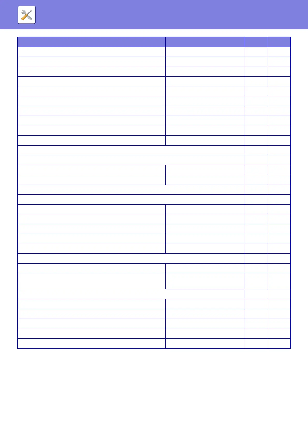 SYSTEM SETTINGS►SETTING MODE LIST