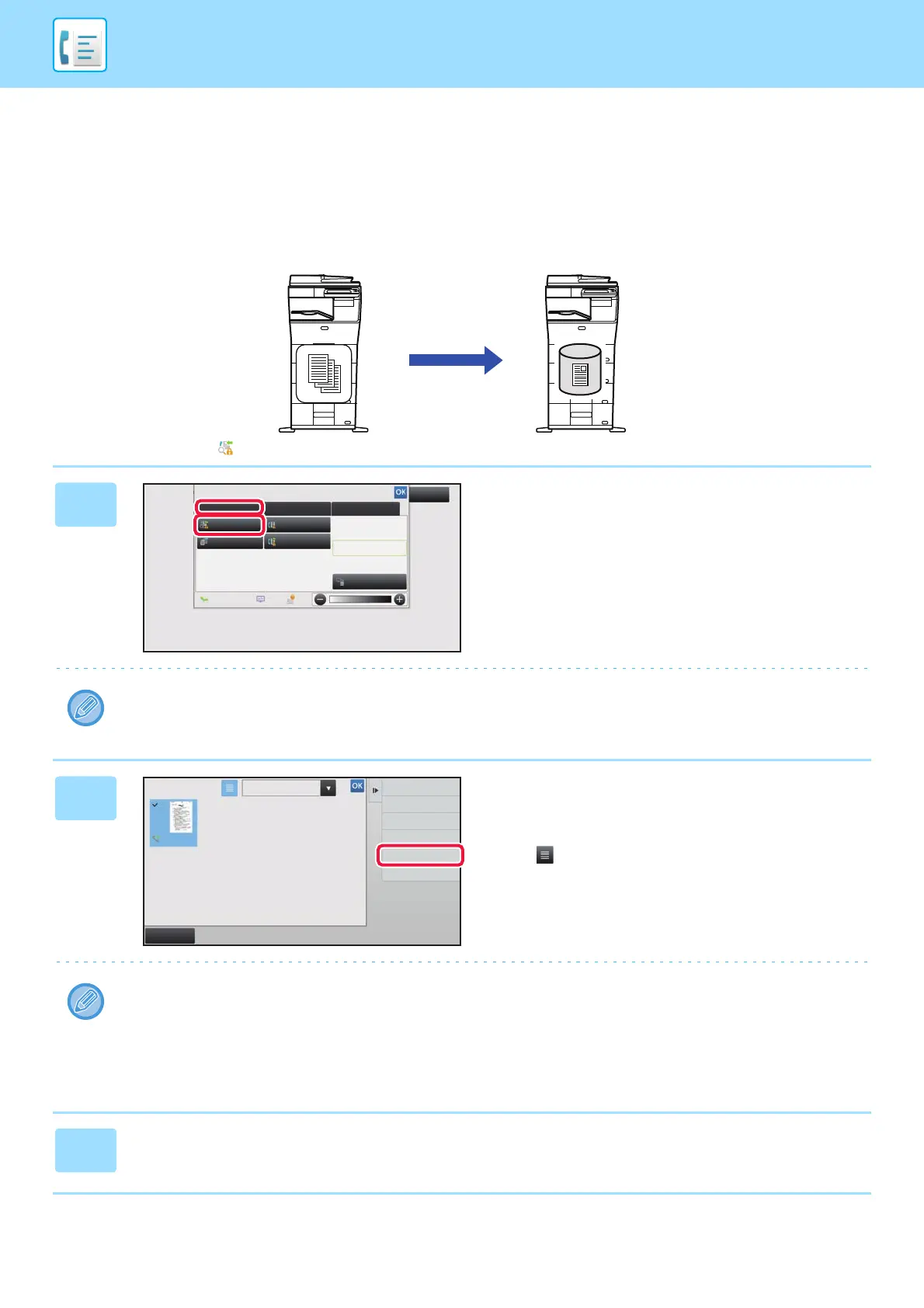 action panel and, in the confirmation message screen, tap the [Store] key.