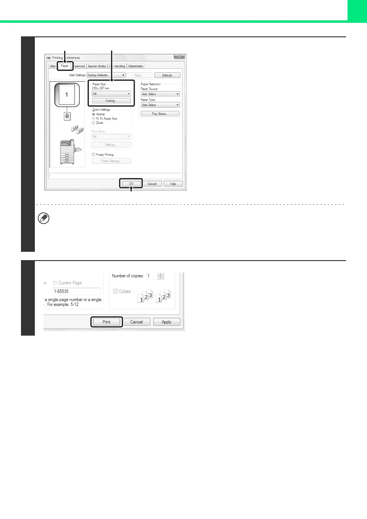 (2) Select the paper size.