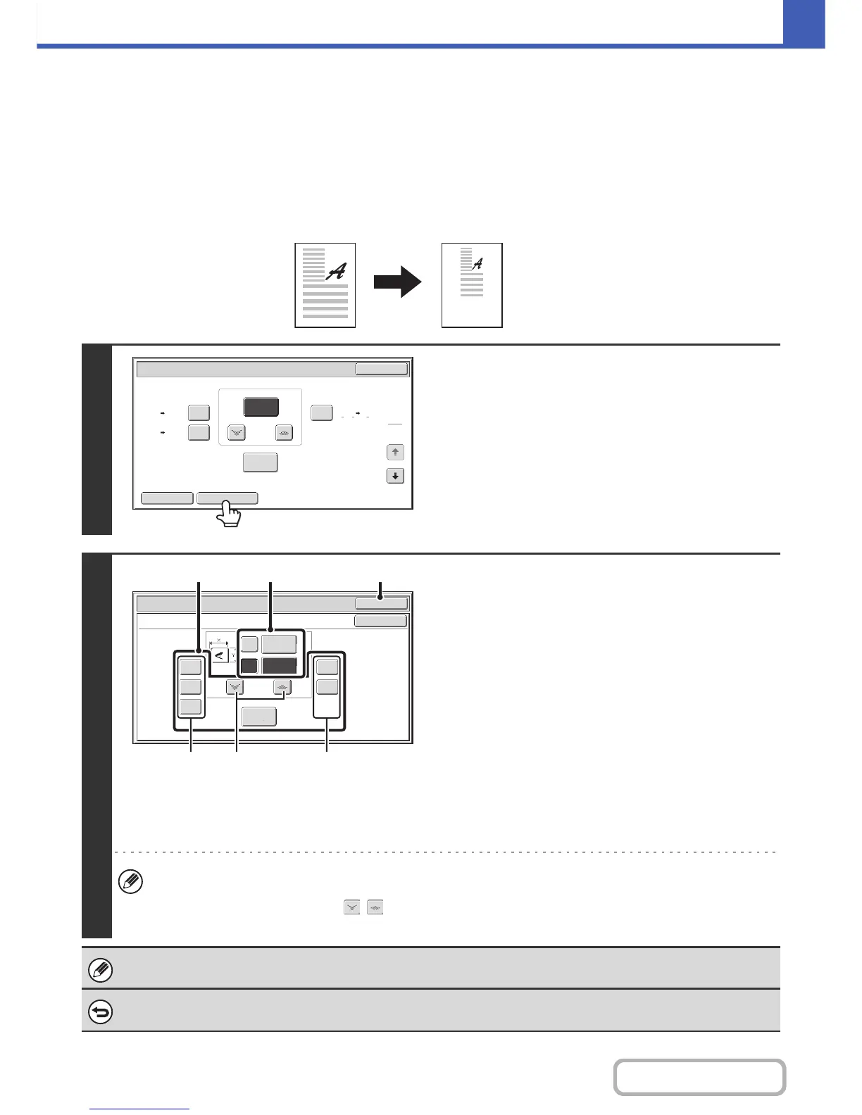 Touch the [Copy Ratio] key in the base screen of copy mode and then follow the steps below.