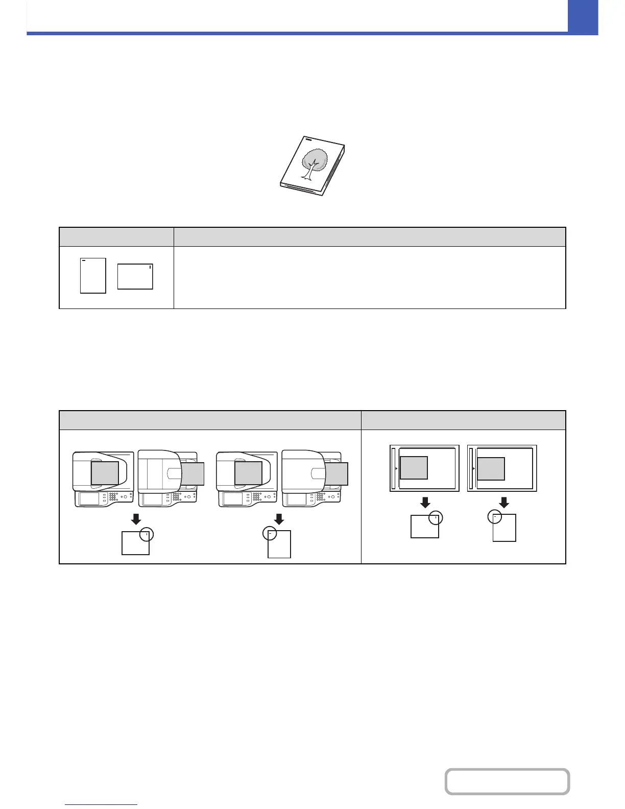 When using the staple sort function, the original must be placed as shown below to enable stapling in the desired