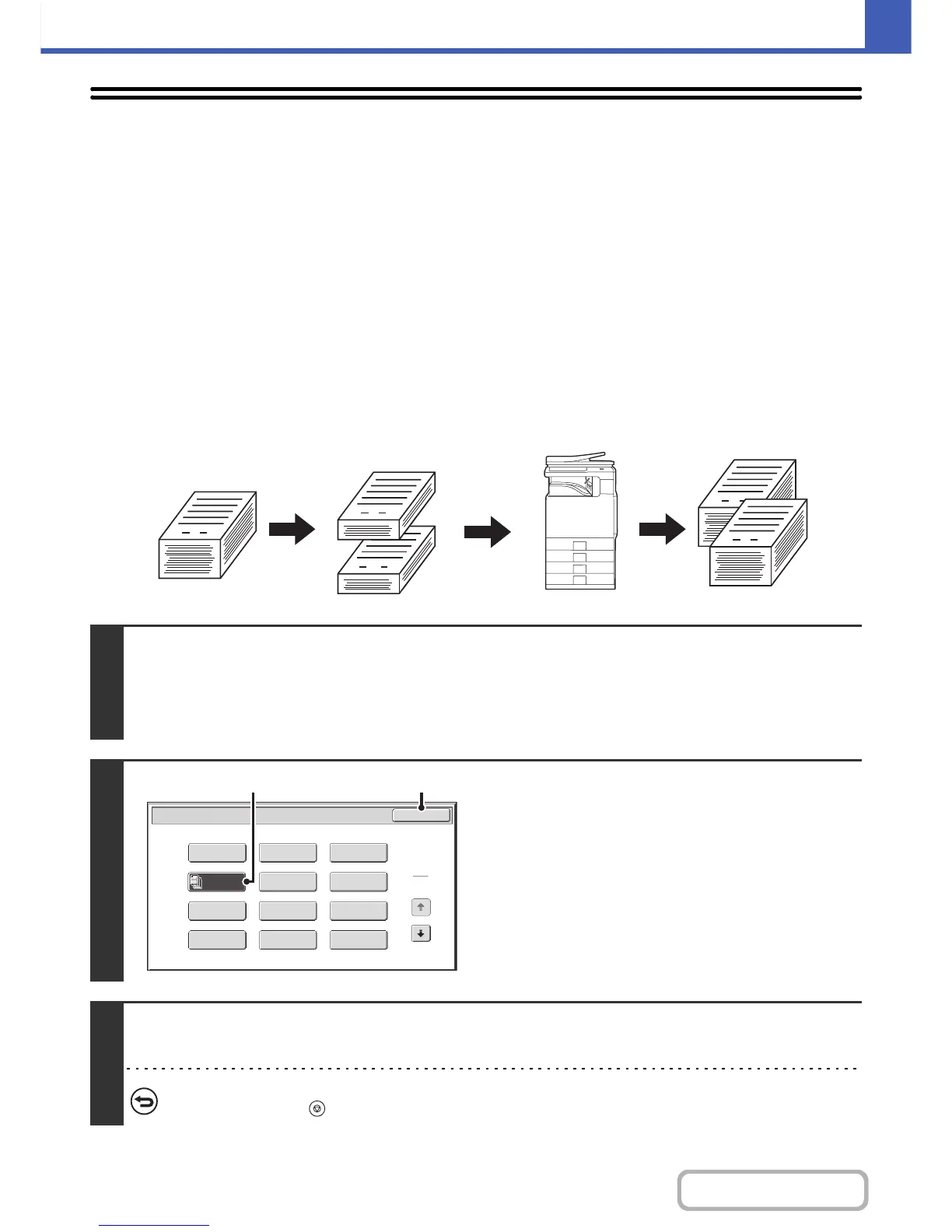 When copying a very large number of originals, this function allows you to divide the originals into sets and feed each