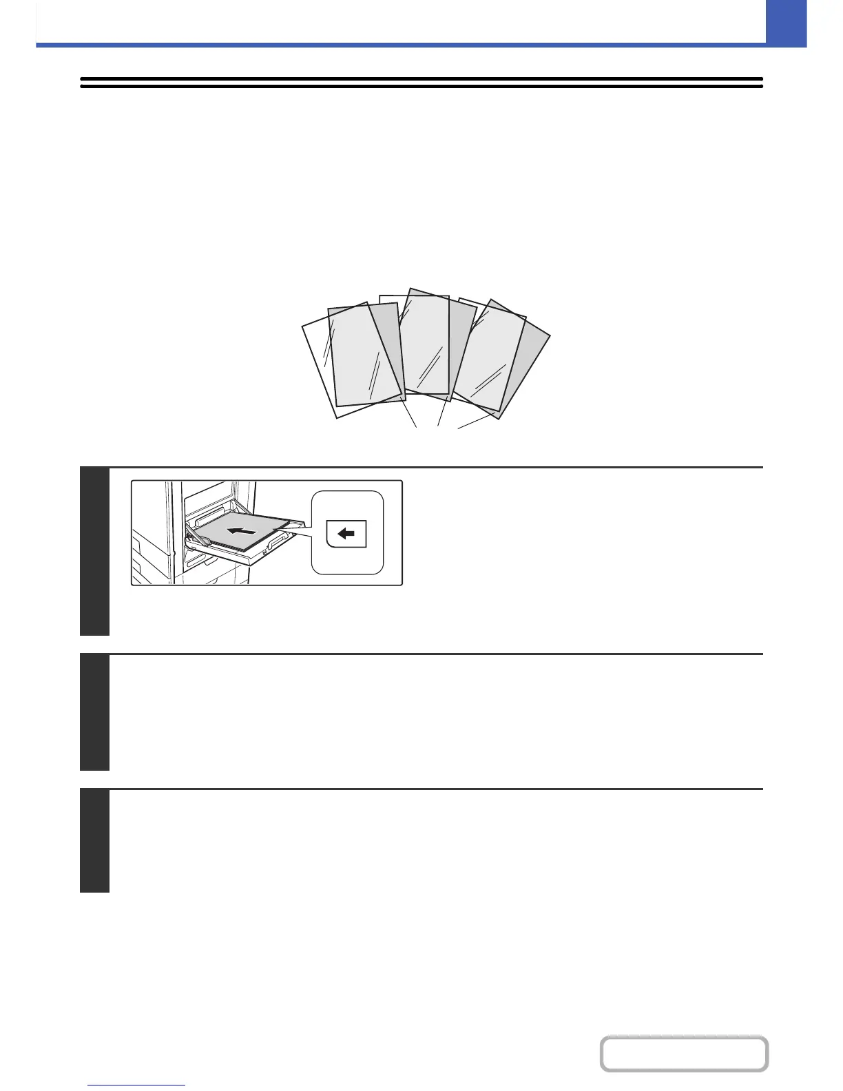 • Transparency film can only be placed in the bypass tray.