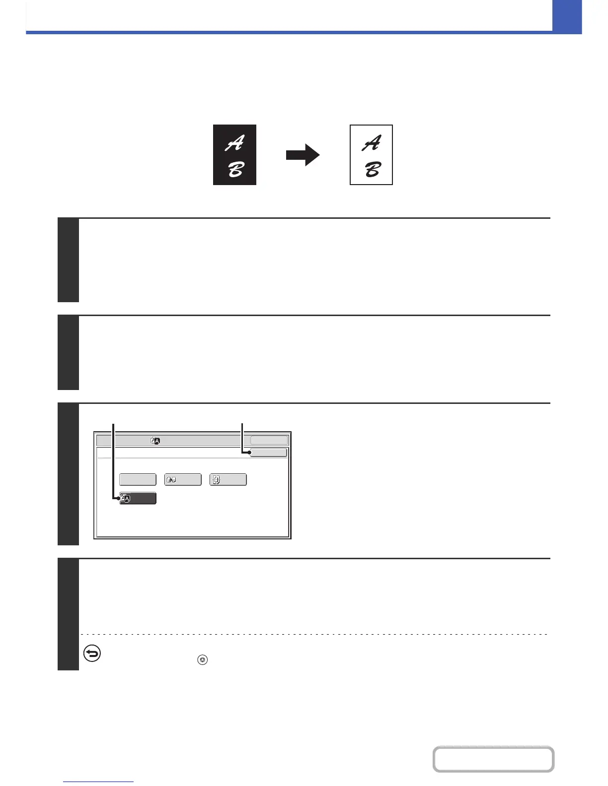 Originals with large black areas (which use a large amount of toner) can be copied using Black/White Reverse to reduce