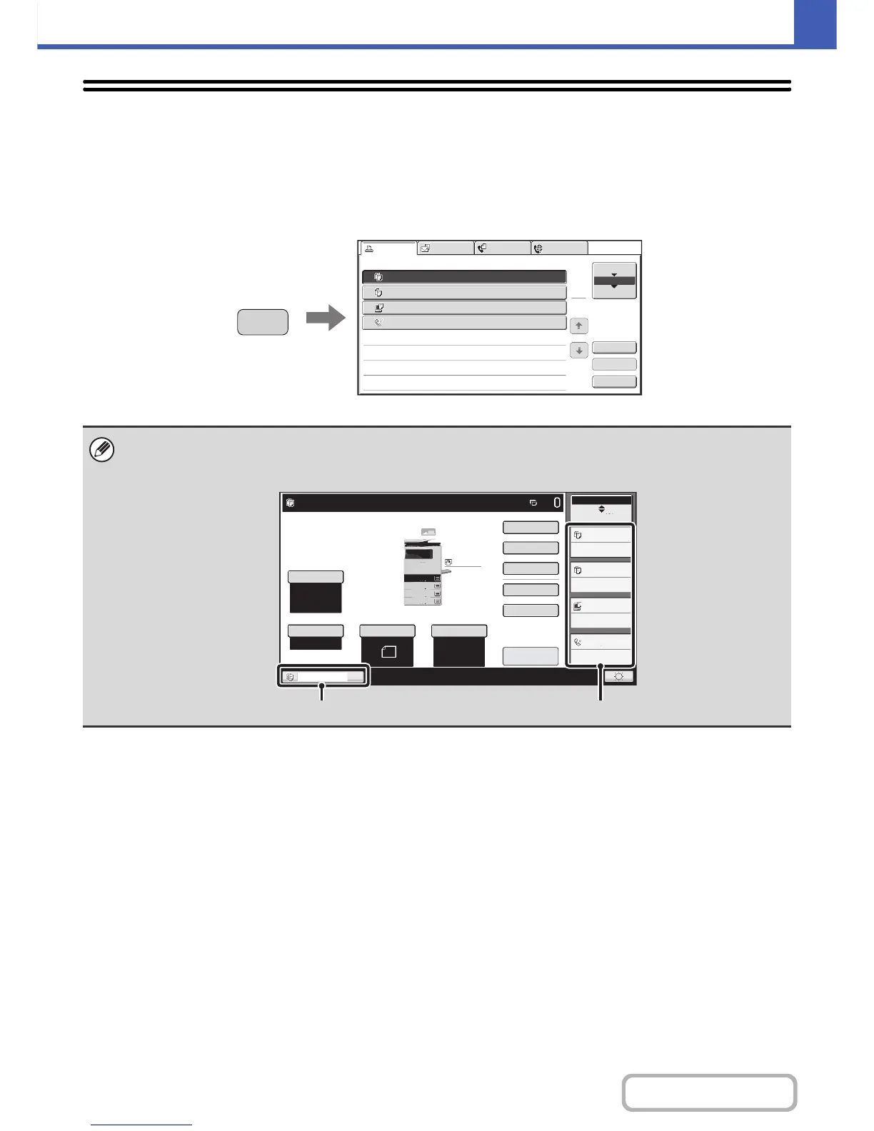 The job status screen is displayed when the [JOB STATUS] key on the operation panel is pressed. The job status