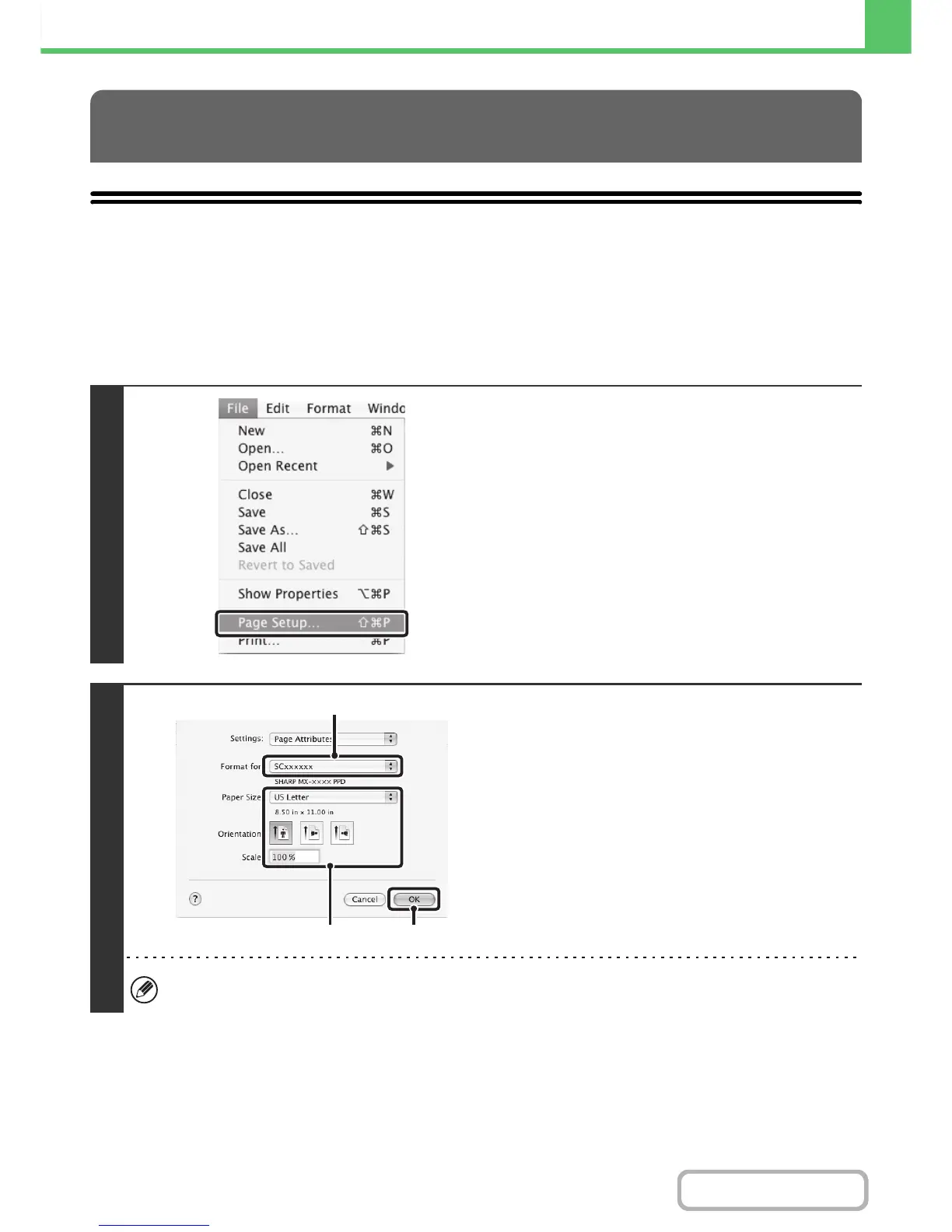 In Mac OS 9, select [Page Setup] from the [File] menu of