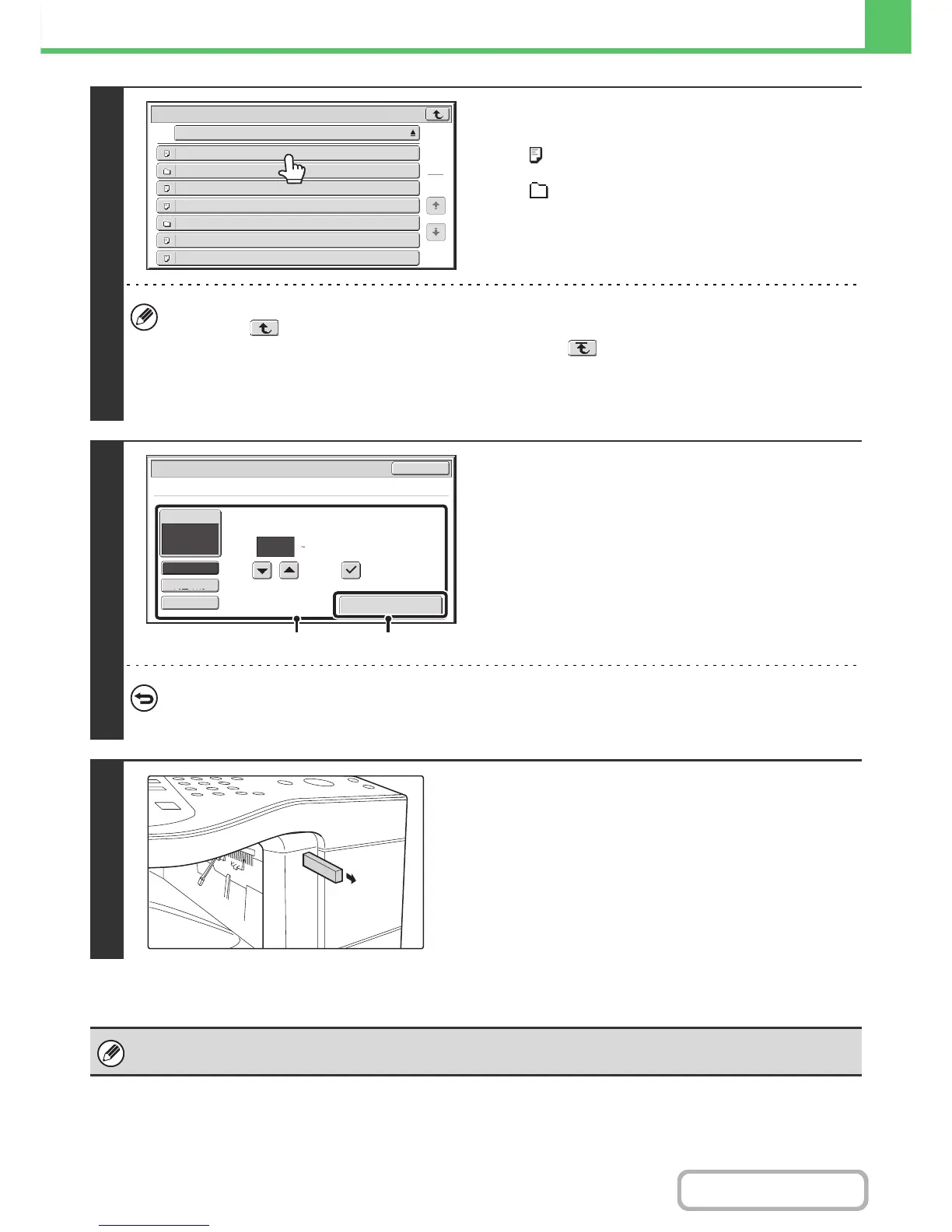 • Touch the [File or Folder Name] key to change the order of the files and folders displayed on the screen. The order