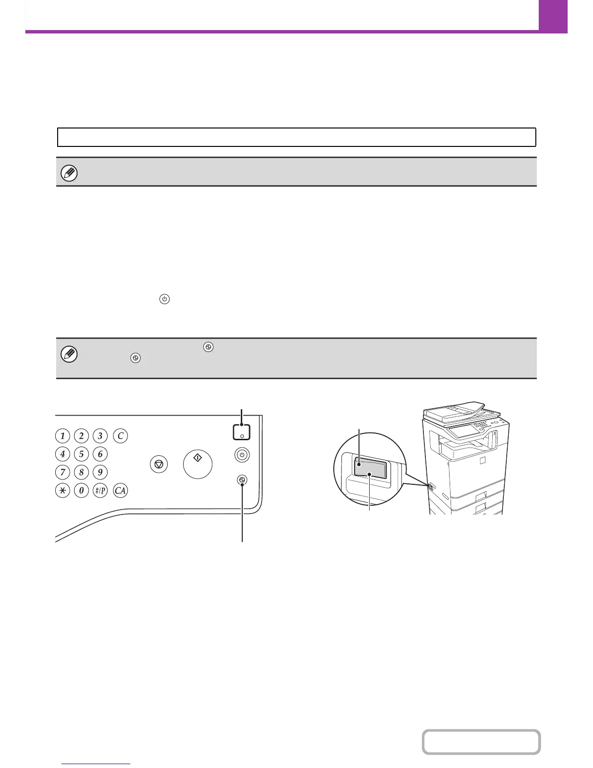 When the main power indicator on the operation panel is lit, the main power is on.
