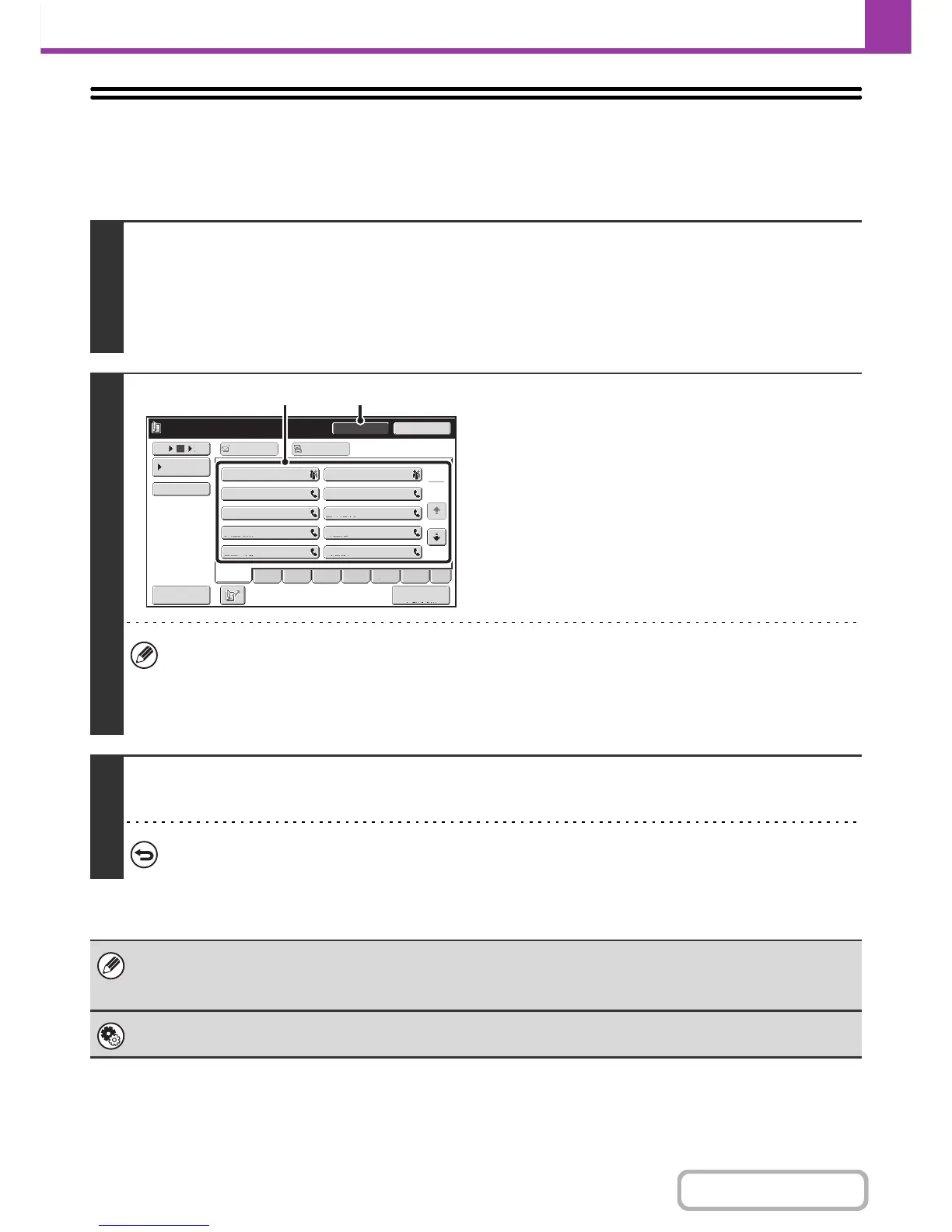 • In addition to specification by one-touch key, a destination can also be specified using a search number. You can