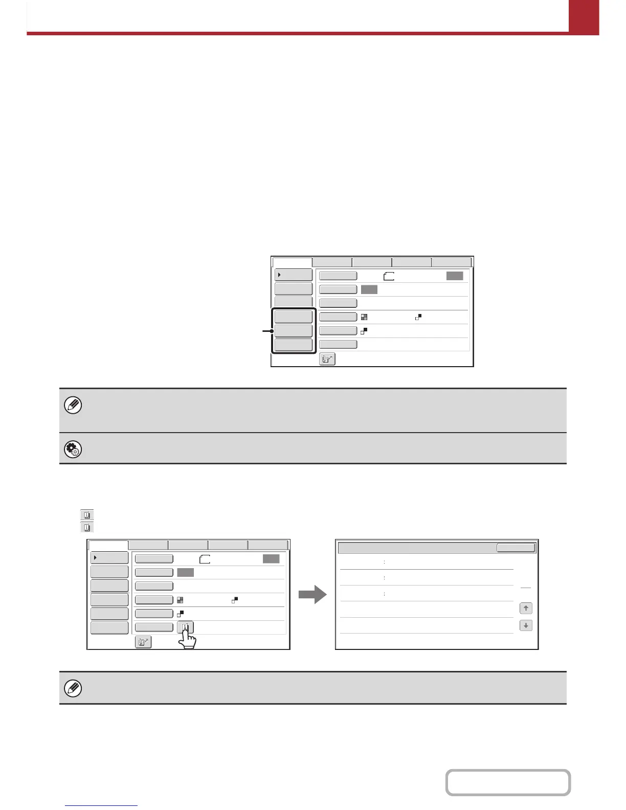 The key appears in the base screen when a special mode or 2-sided scanning is selected.