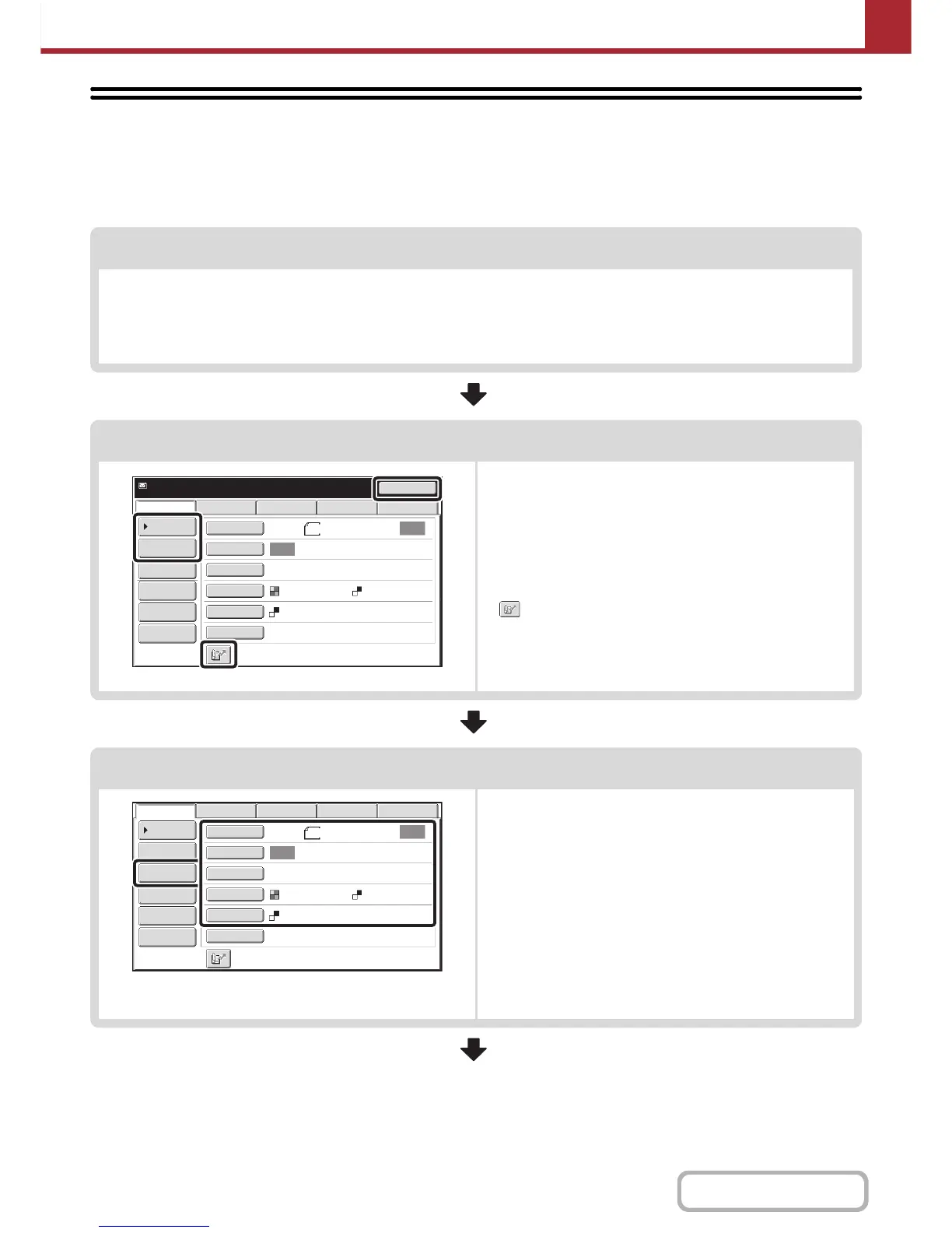This section explains the basic procedure for scanning and transmission. Select settings in the order shown below to