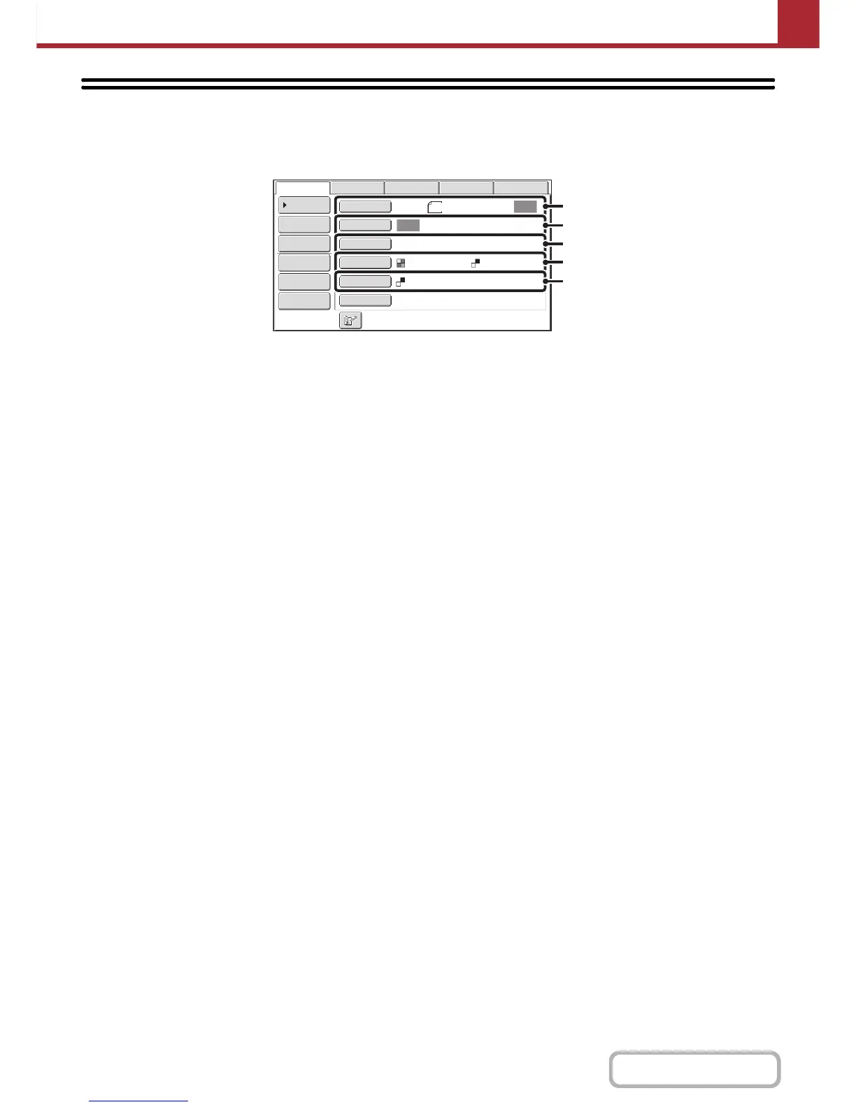 Settings for scanning the original are selected in the base screen of each mode. The current state of each setting