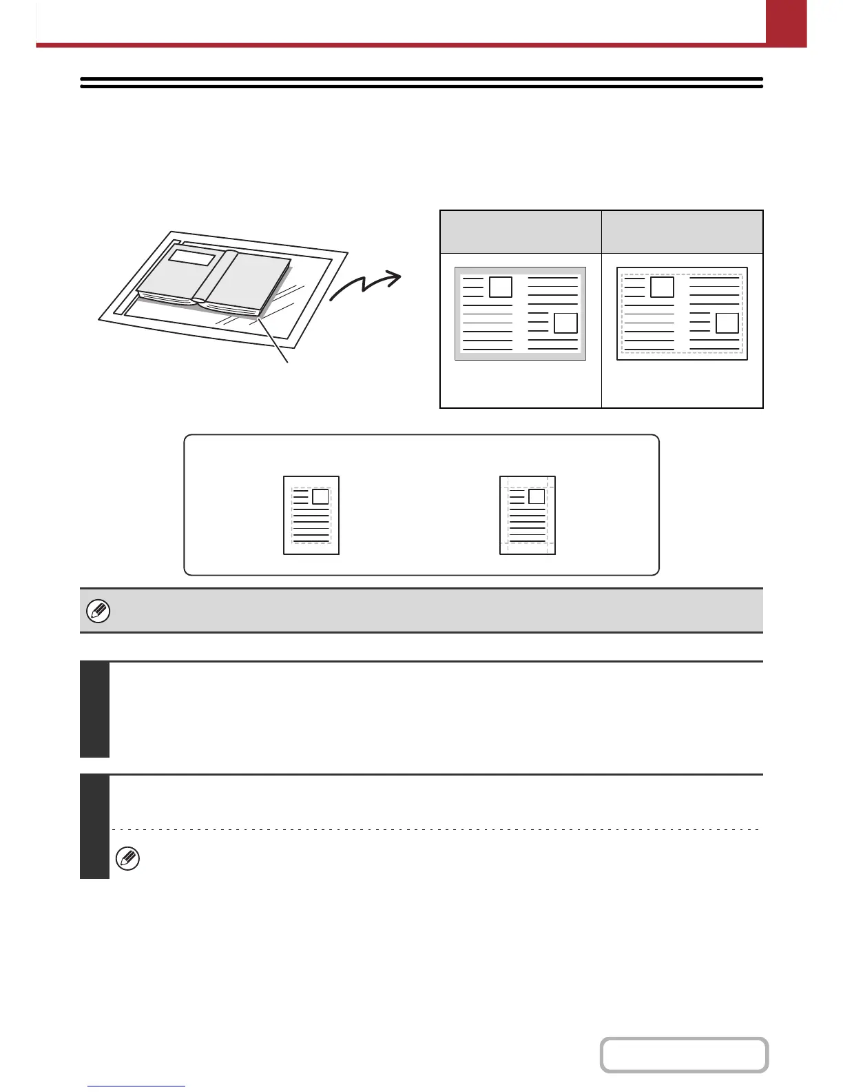 The erase function is used to erase shadows on images produced when scanning thick originals or books. (This function
