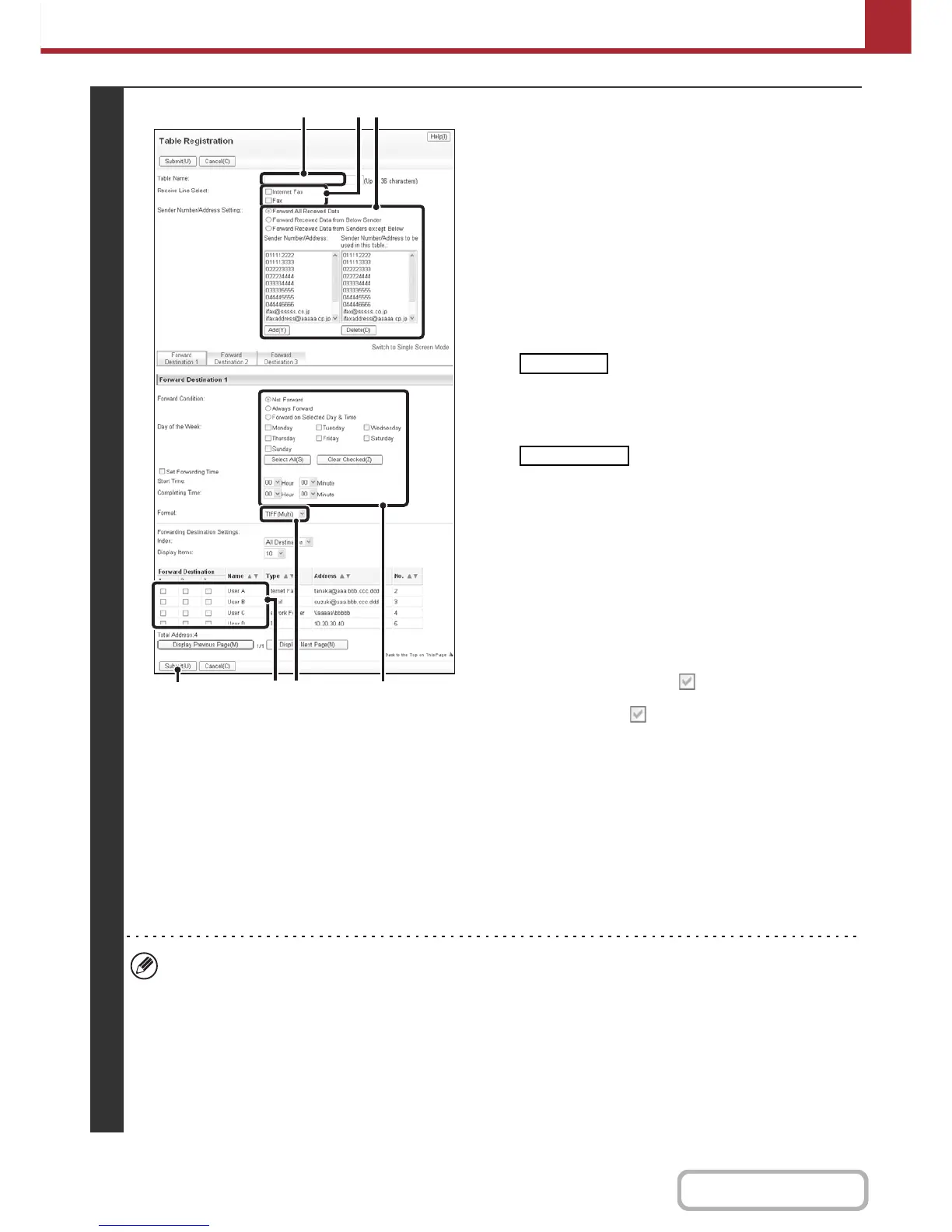 • For the MX-B402SC, up to three forwarding day and time settings can be set for one forwarding table, and a