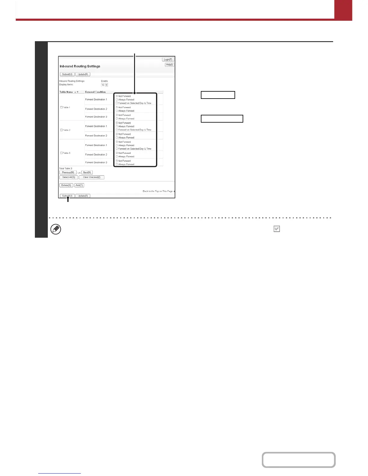 To delete a forwarding table, click the checkbox next to the table name so that it is selected and click [Delete].