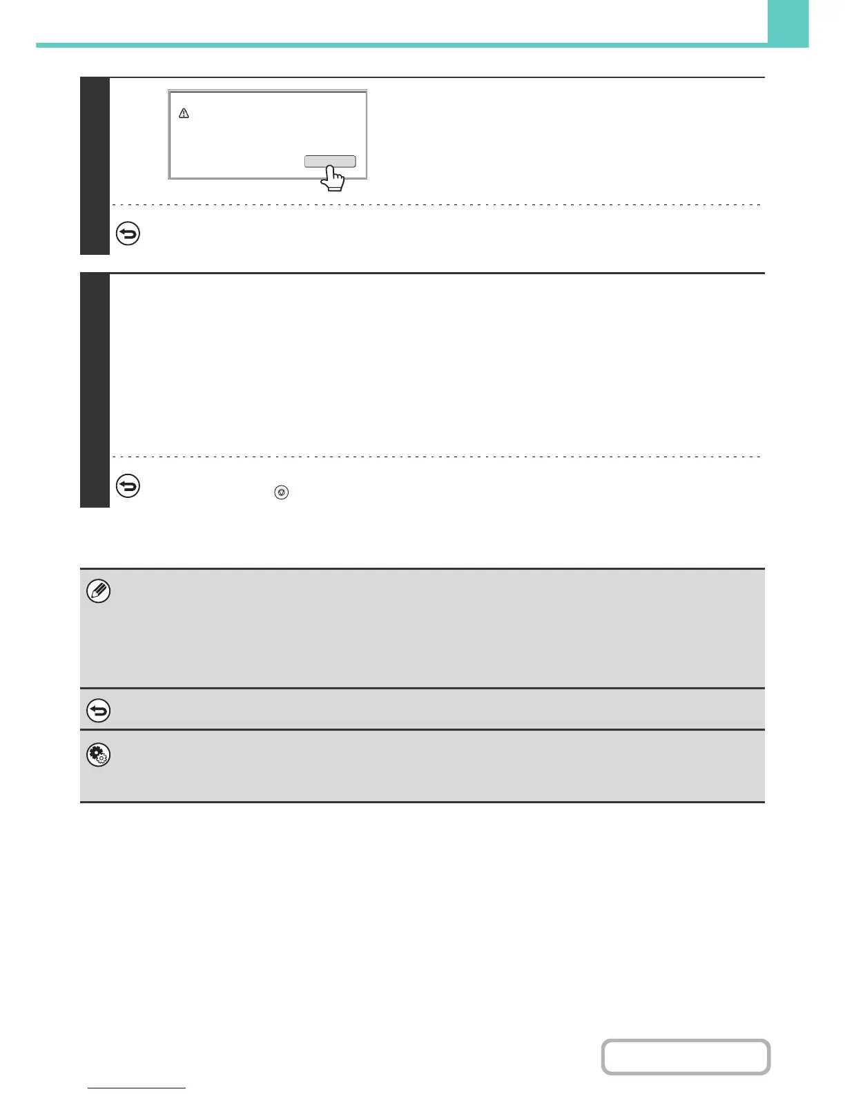 • To prevent accidental saving of the document, the message "The scanned data is stored in the quick file folder." appears