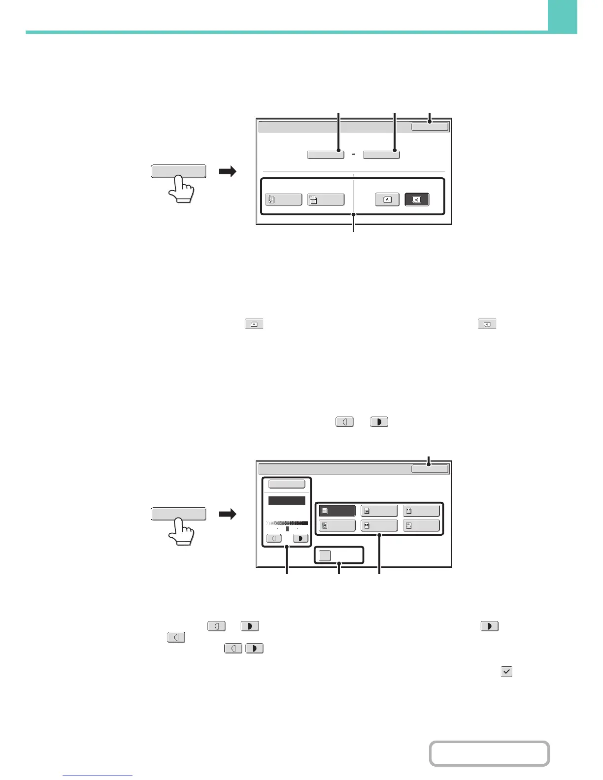 Select an appropriate exposure mode for the original and touch the or key to adjust the exposure level.