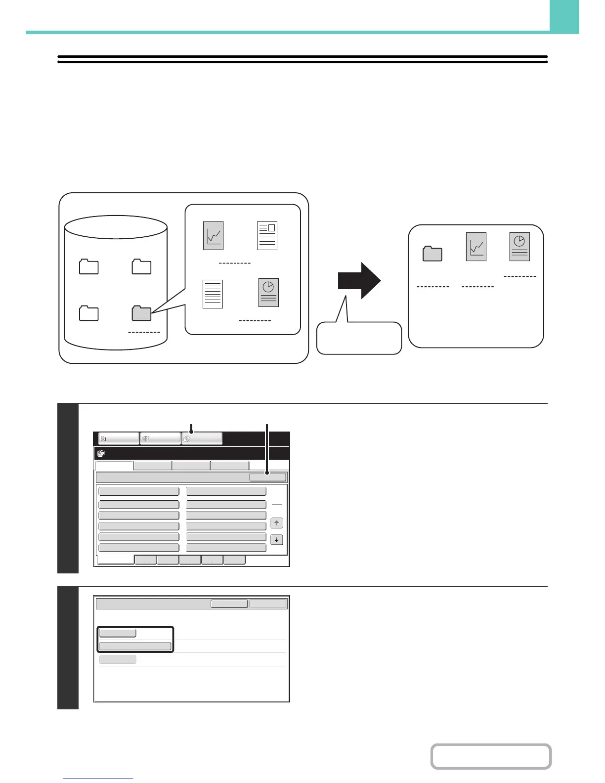 When there are many stored files, it may take time to find a file. The search function of document filing mode can be