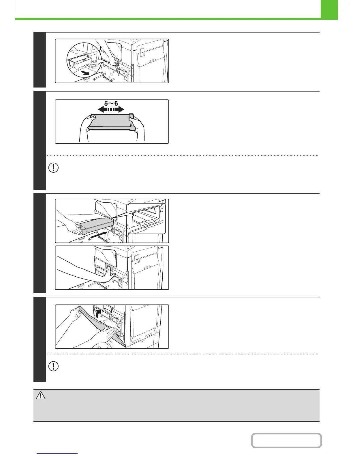 • When shaking the toner cartridge, be sure to shake with the protective material inserted in the cartridge. If you