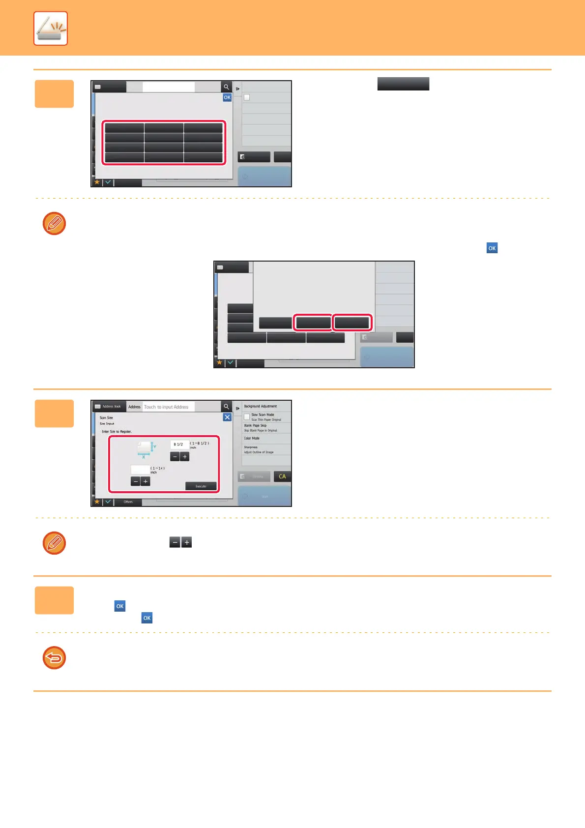 Tap the key, and check that the key of the size stored on the Scan Size screen is added properly. After you have