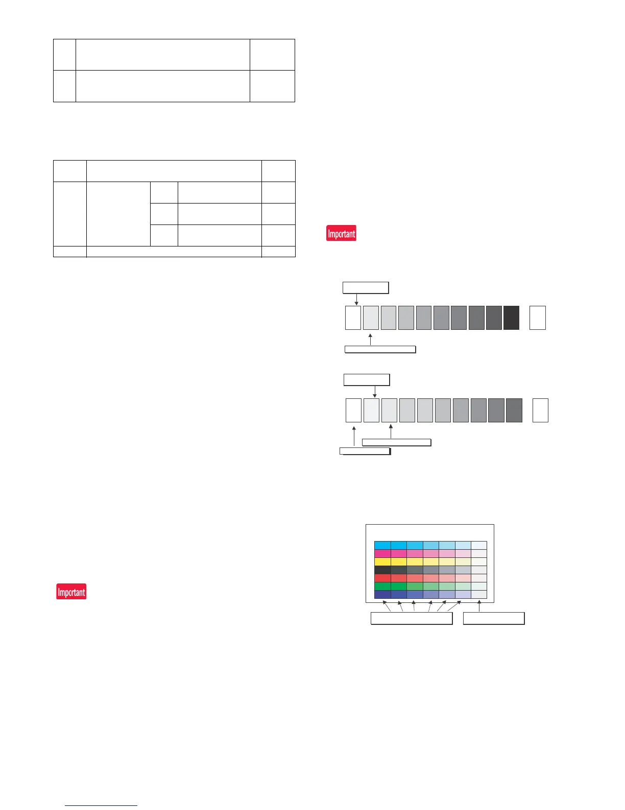 For the color (gray) balance, use the servicing color test chart