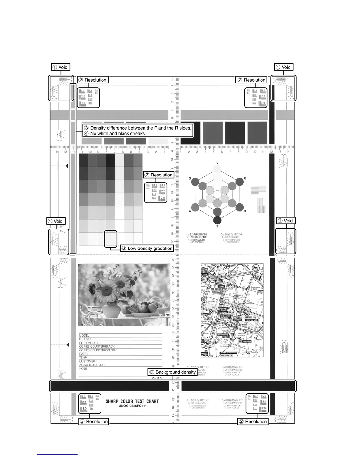 When using the servicing color test chart, fold or separate the