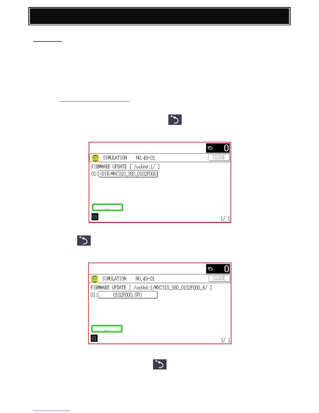 Select the MXC310/380 firmware file by entering the file number and press the shortcut