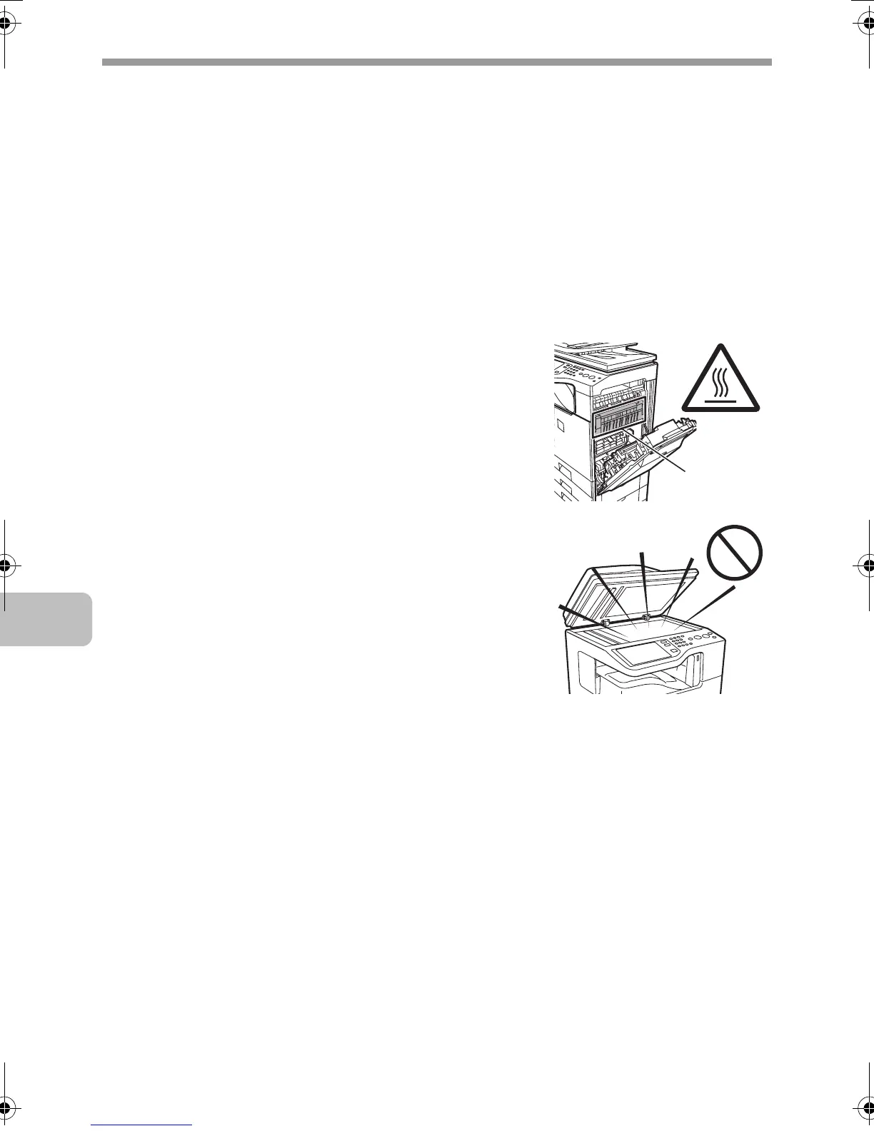 • Do not touch the transfer belt and the transfer roller. Scratches or smudges on