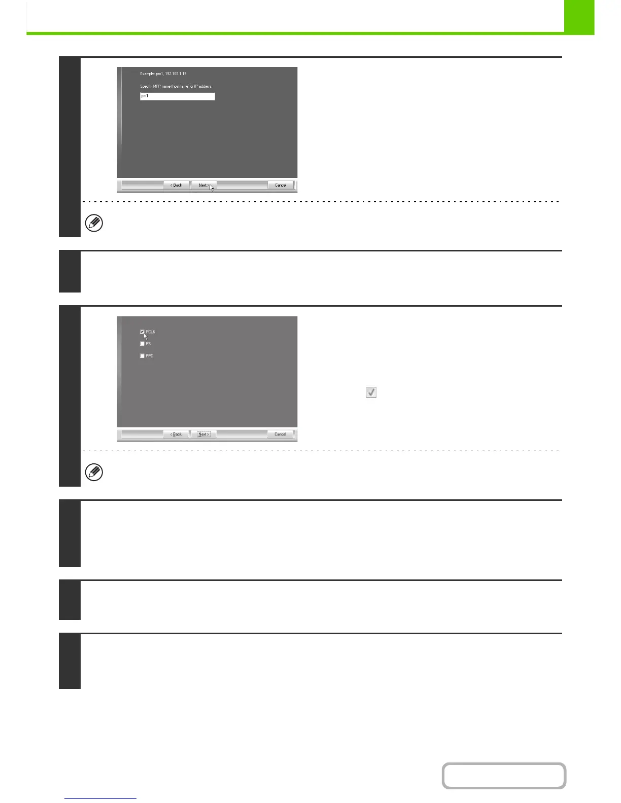 When the PC-Fax driver is being installed, this screen does not appear. Go to the next step.