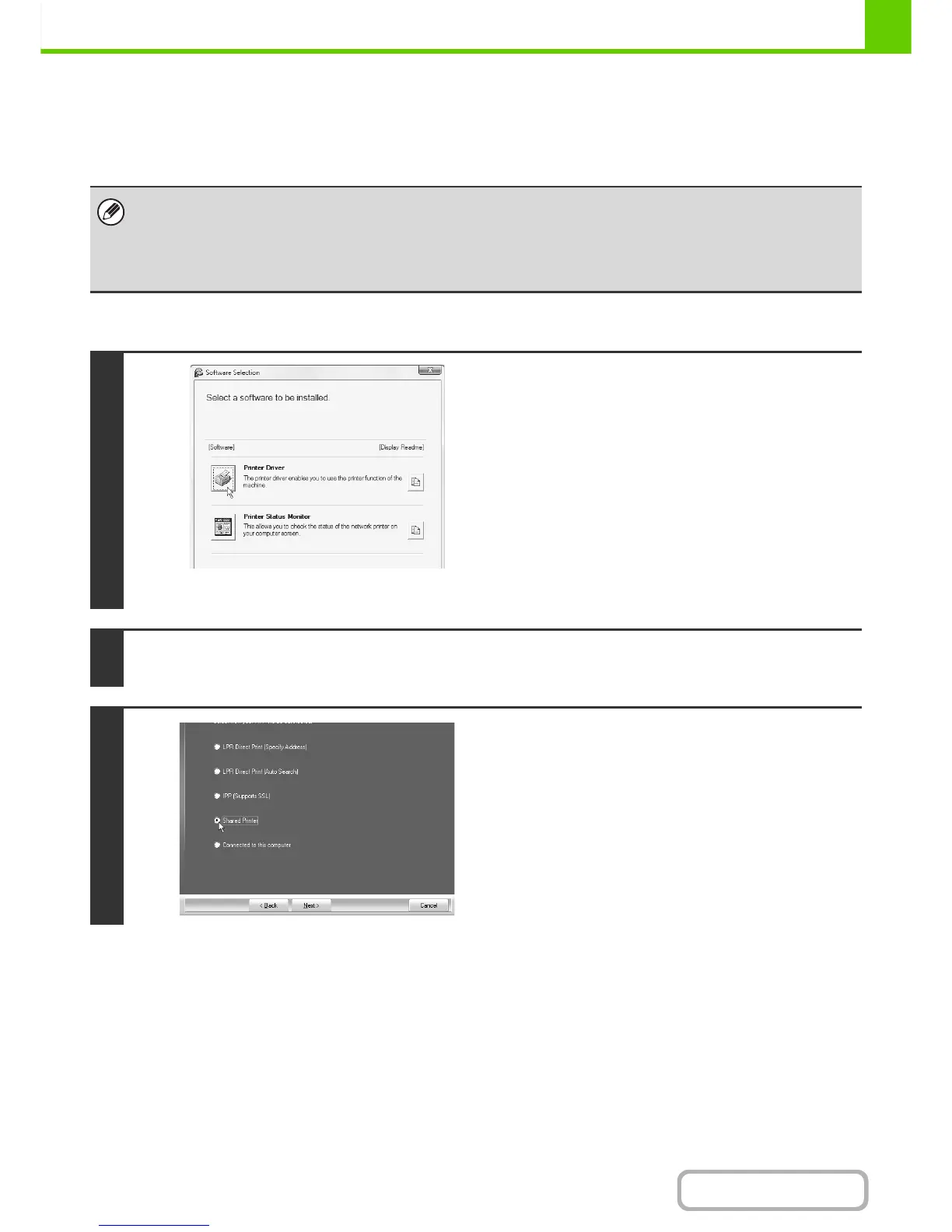 driver installed on a print server, follow the steps below to install the printer driver or the PC-Fax driver on the client