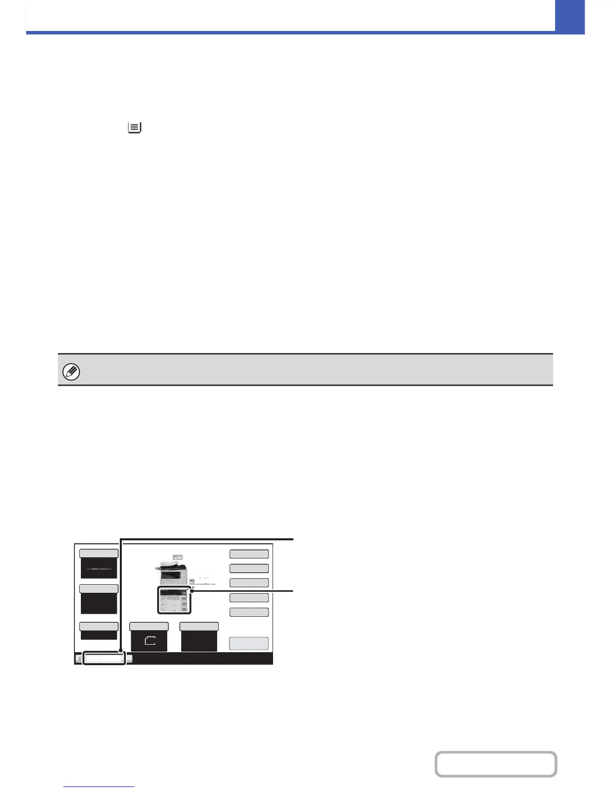 The screen explained in this section appears when 500-sheet paper feed units and finisher are installed. The image will vary