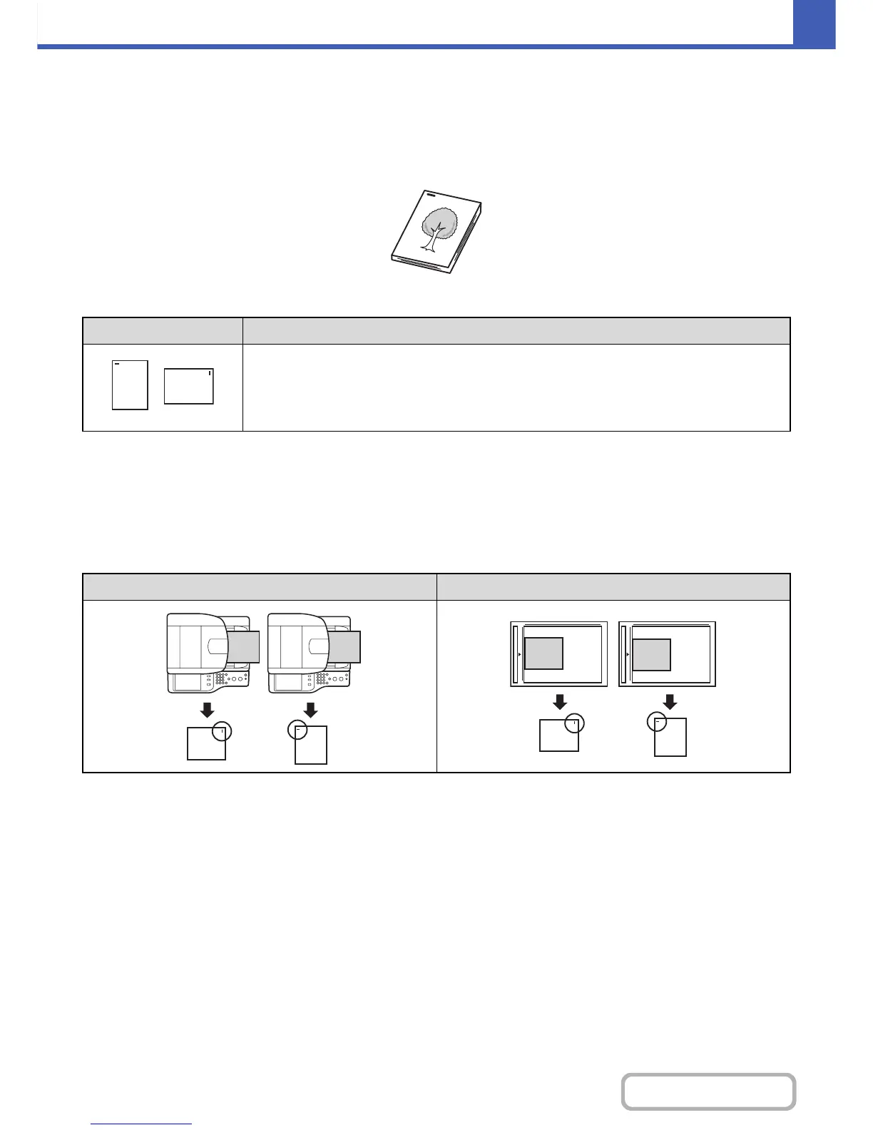 When using the staple sort function, the original must be placed as shown below to enable stapling in the desired