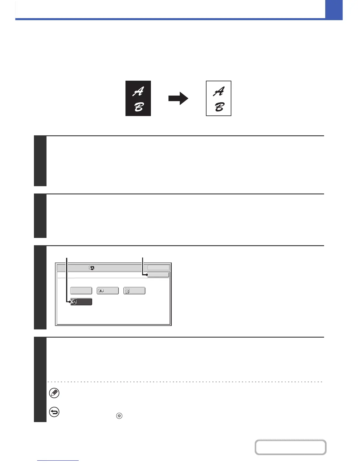 Originals with large black areas (which use a large amount of toner) can be copied using Black/White Reverse to reduce