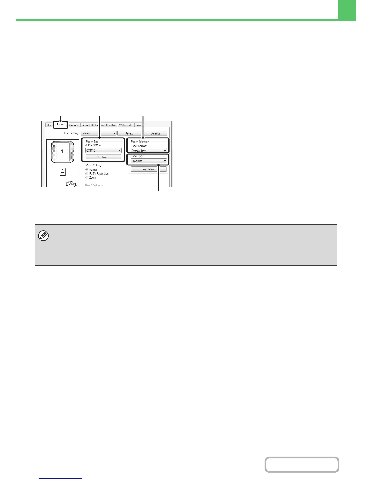 The bypass tray can be used to print on special media such as envelopes. The procedure for printing on an envelope