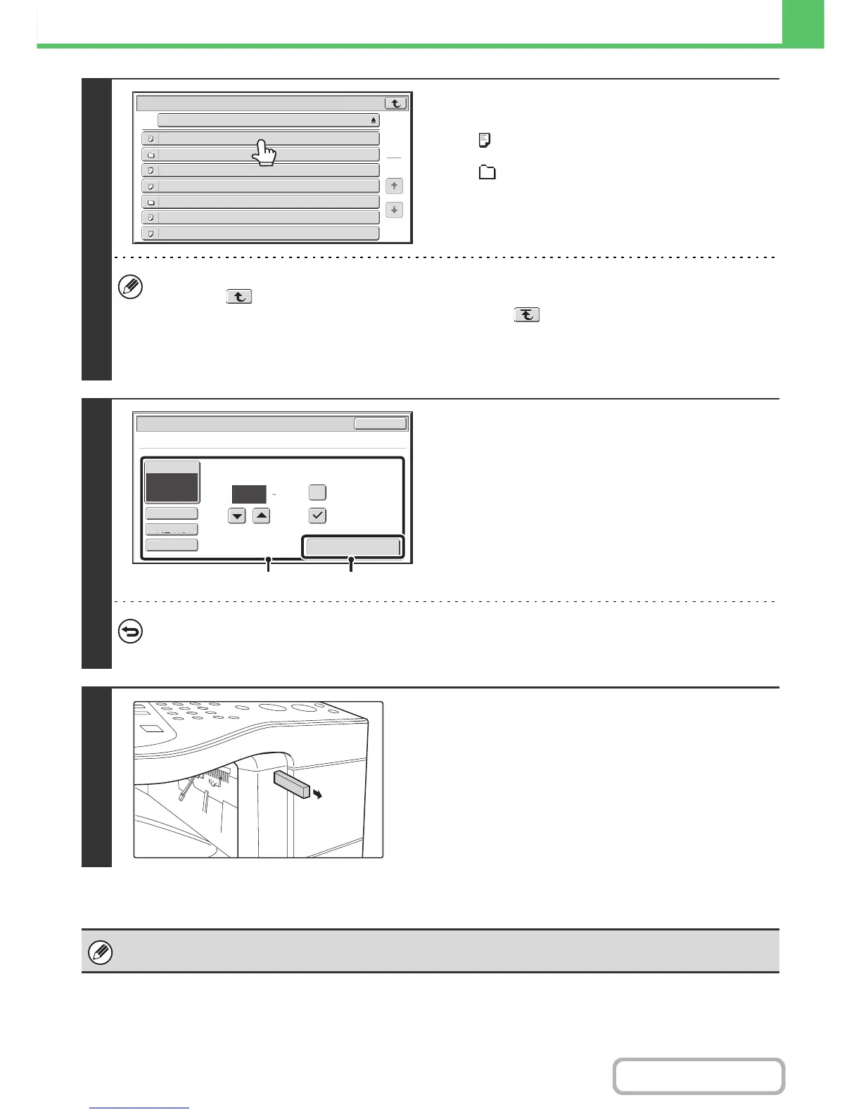 • Touch the [File or Folder Name] key to change the order of the files and folders displayed on the screen. The order