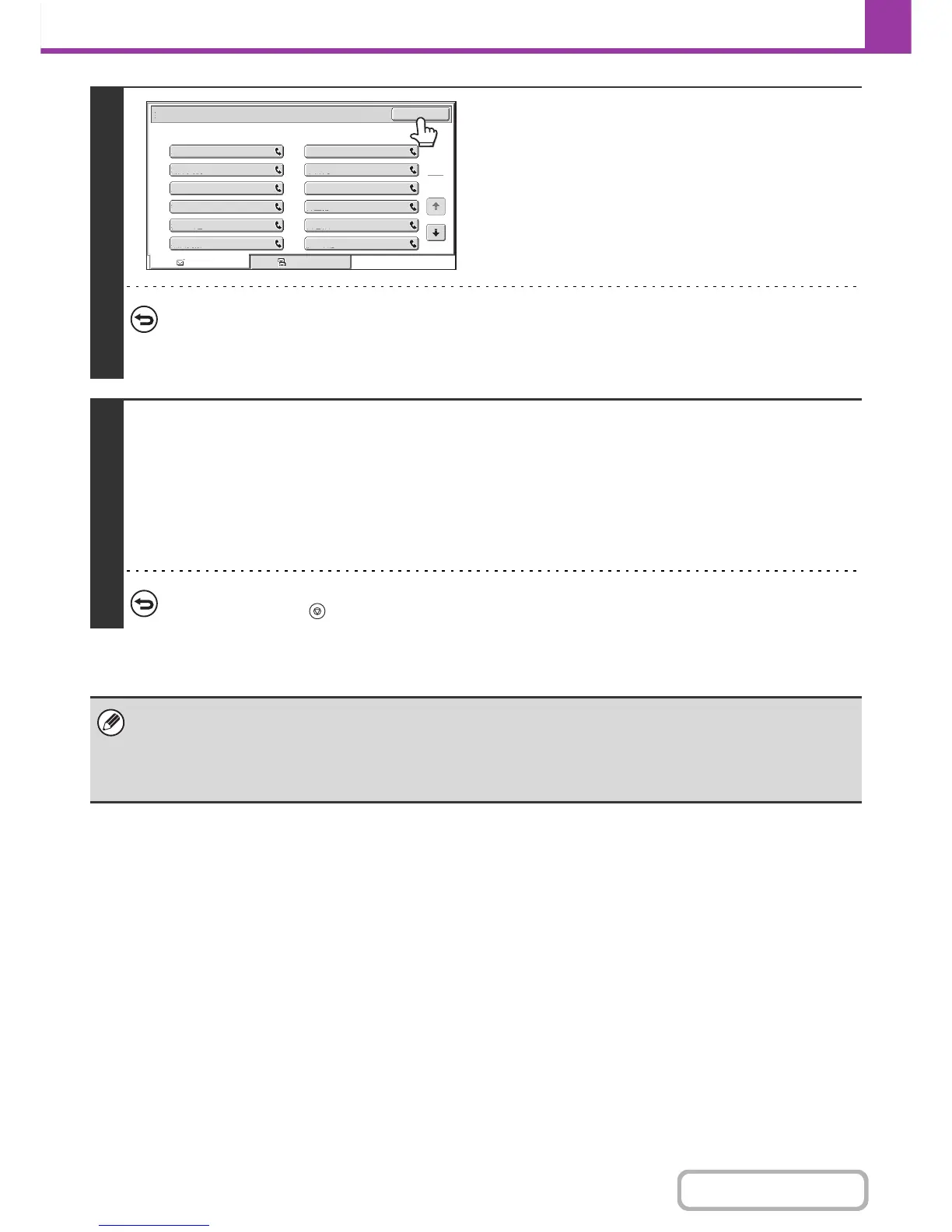 Touch the key of the destination that you wish to cancel. A message will appear to confirm the deletion. Touch the