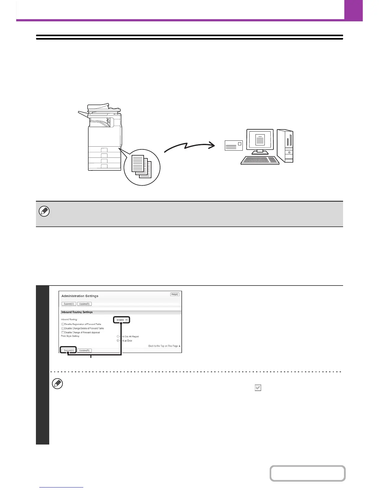 When inbound routing is enabled, you can also specify whether or not you wish the machine to print the forwarded