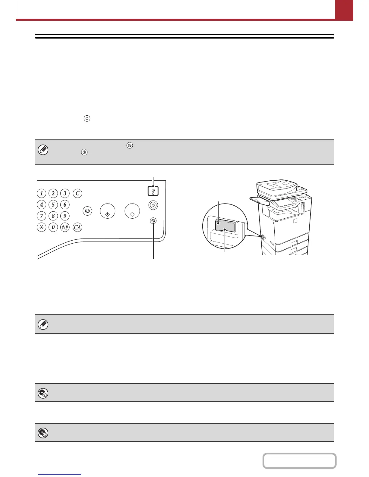 The main power is "on" when the main power indicator on the right side of the operation panel is lit.